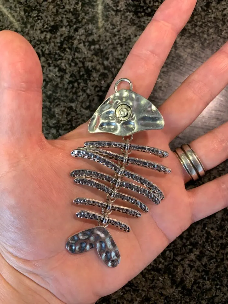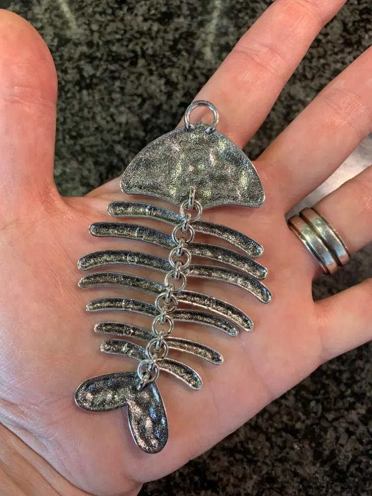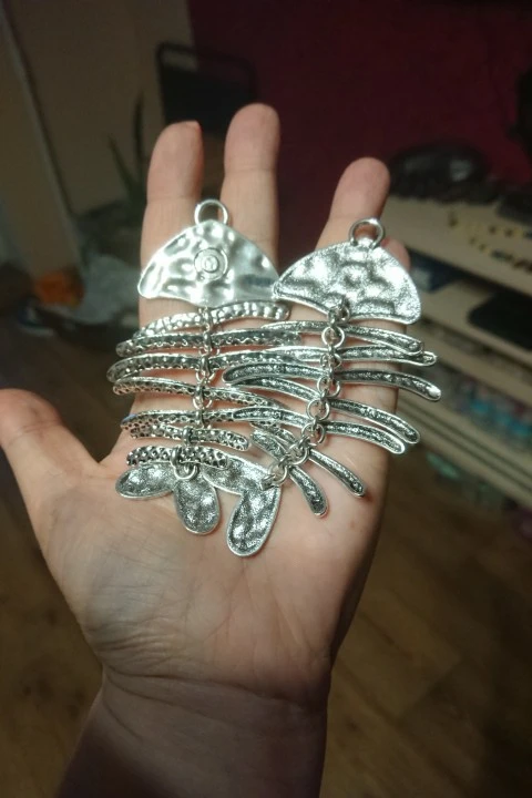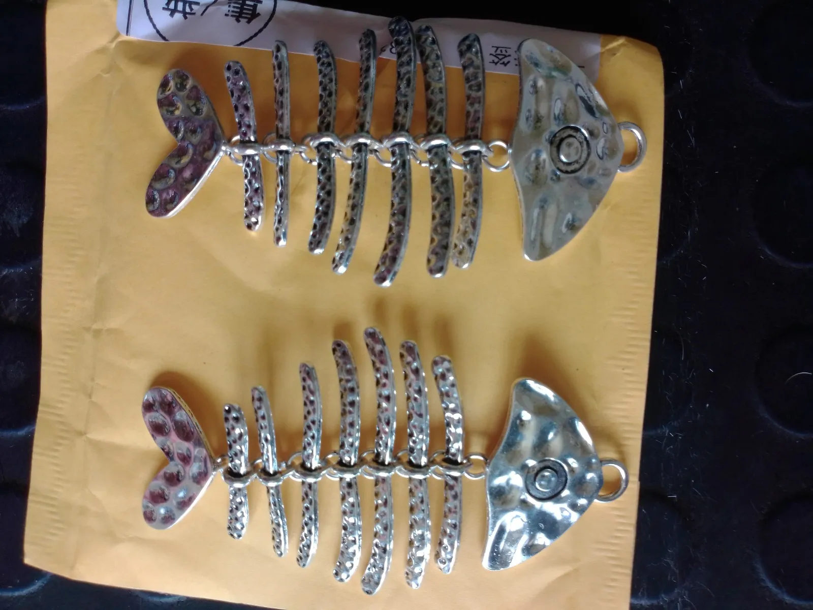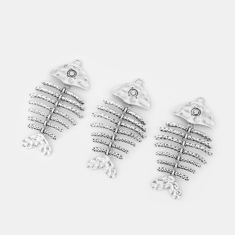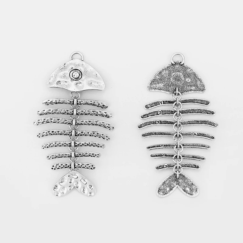 Подвески-талисманы в виде рыбьей кости, под старину, серебристого цвета, 100x56 мм, 2 шт.