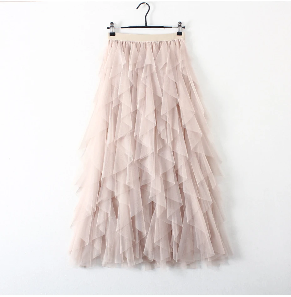 Женская длинная Тюлевая юбка-пачка TIGENA, розовая плиссированная юбка макси с высокой талией в Корейском стиле, 2021