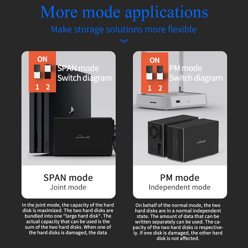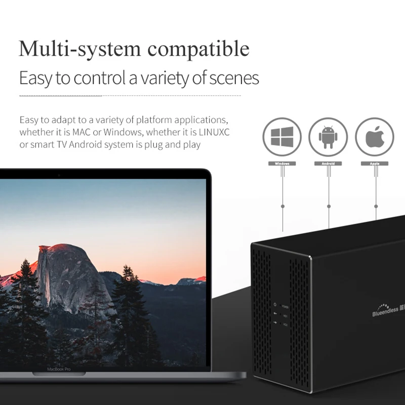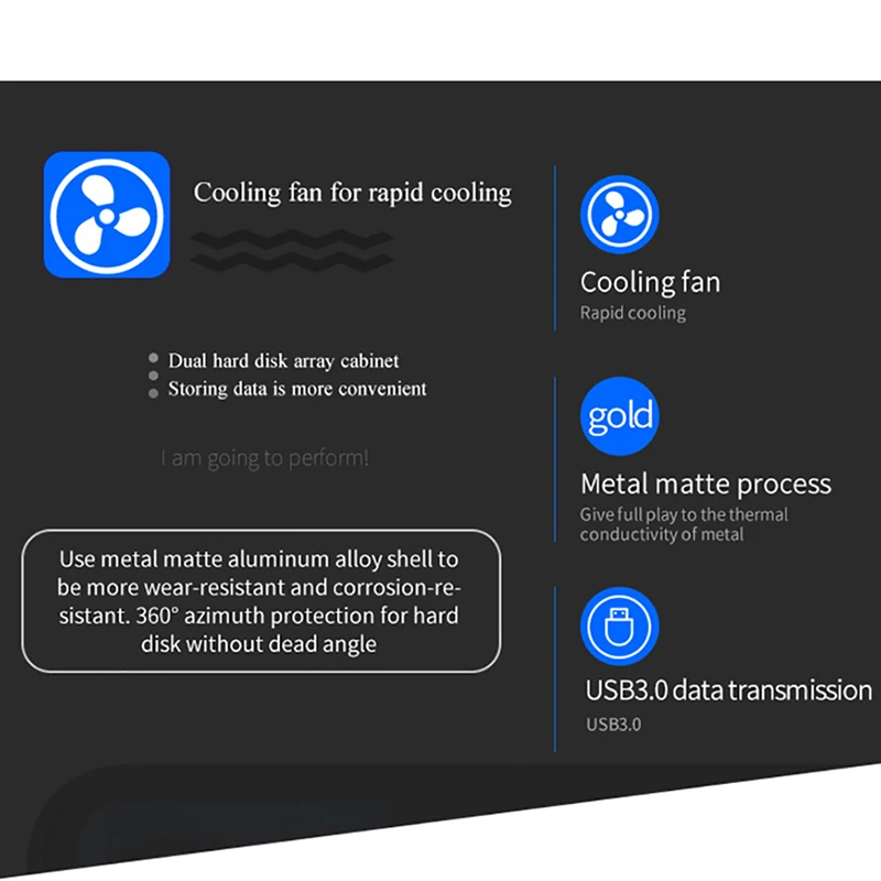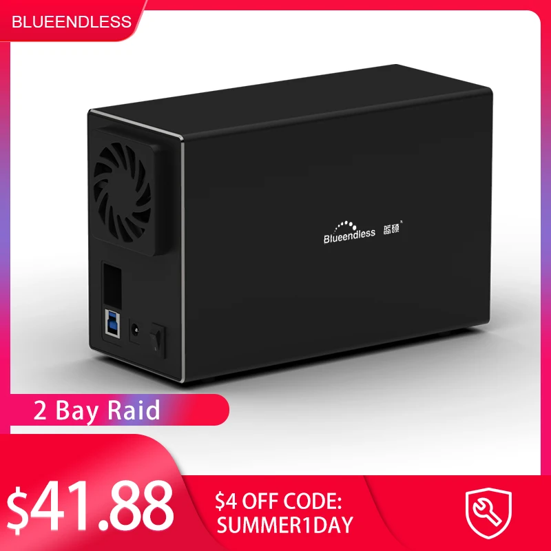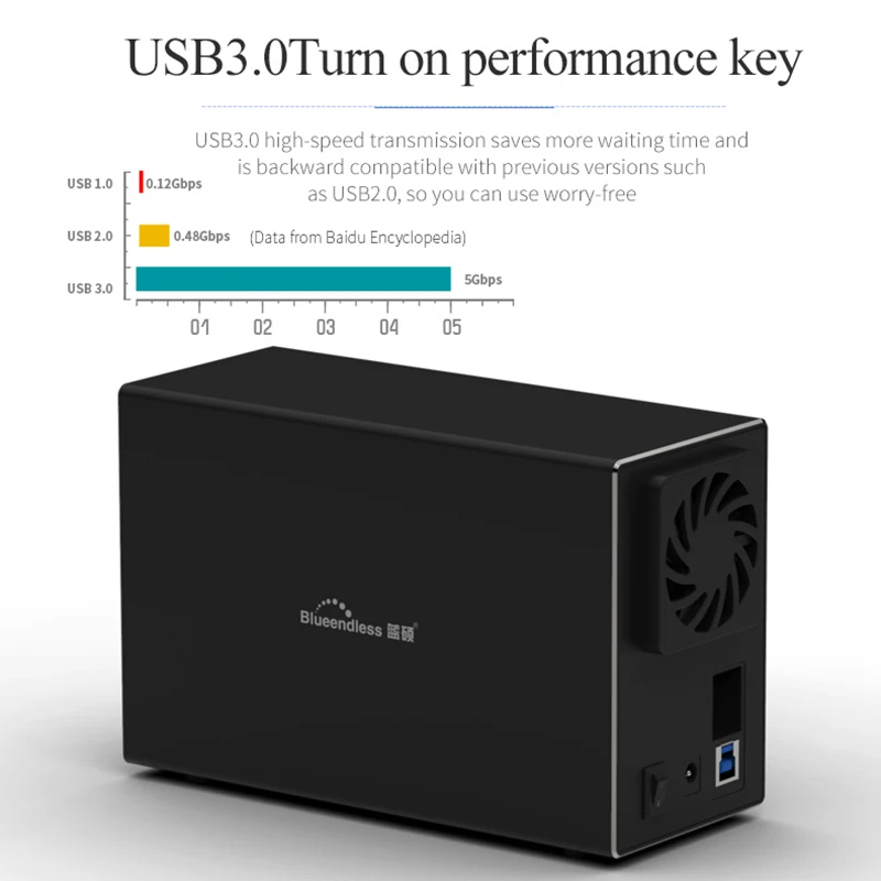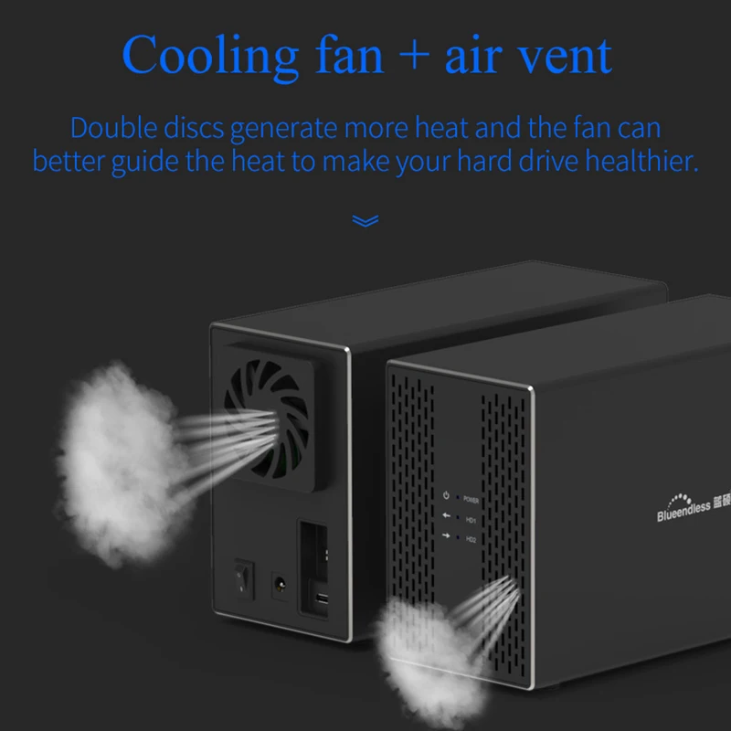 Алюминиевый корпус для внешних жестких дисков Blueendless, 2 отсека, 3,5 дюйма, SATA на USB 3,0, Поддержка дисков 2x10 ТБ, черный