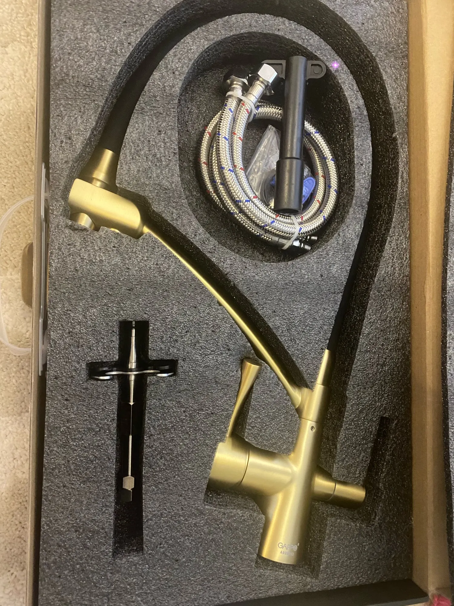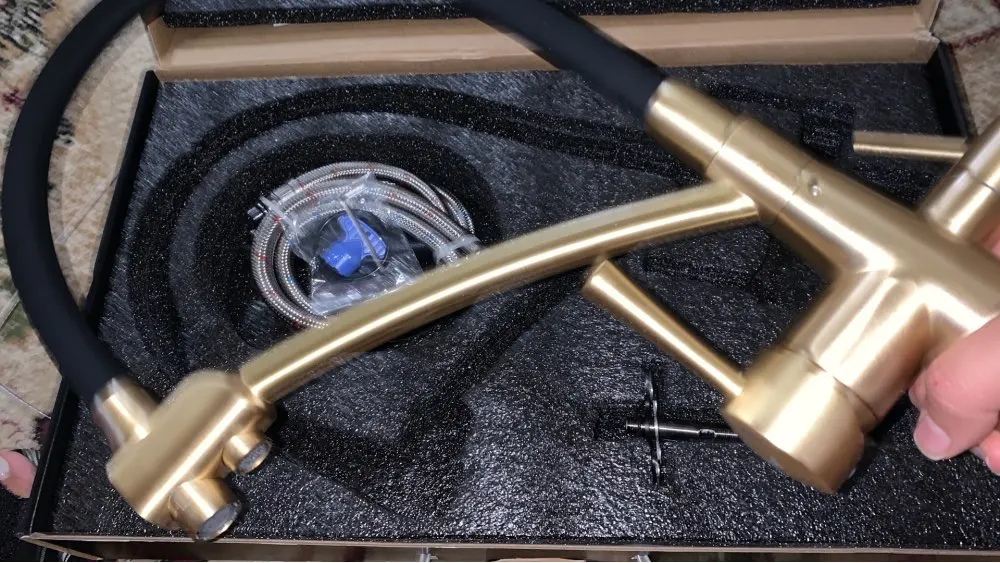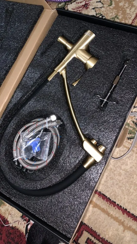 Кран красивый, очень тяжелый и выглядит жестким. Золотистого цвета с начесом, не яркий, но красивый и сдержанный. Еще не установлен, поэтому невозможно сделать техническую оценку. Прибыл очень быстро!