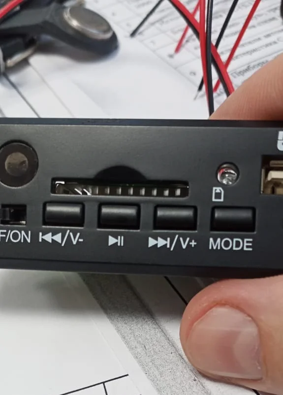 Выбор режима "MODE" машины: последовательно цикл USB/SD/AUX/FM/синий;