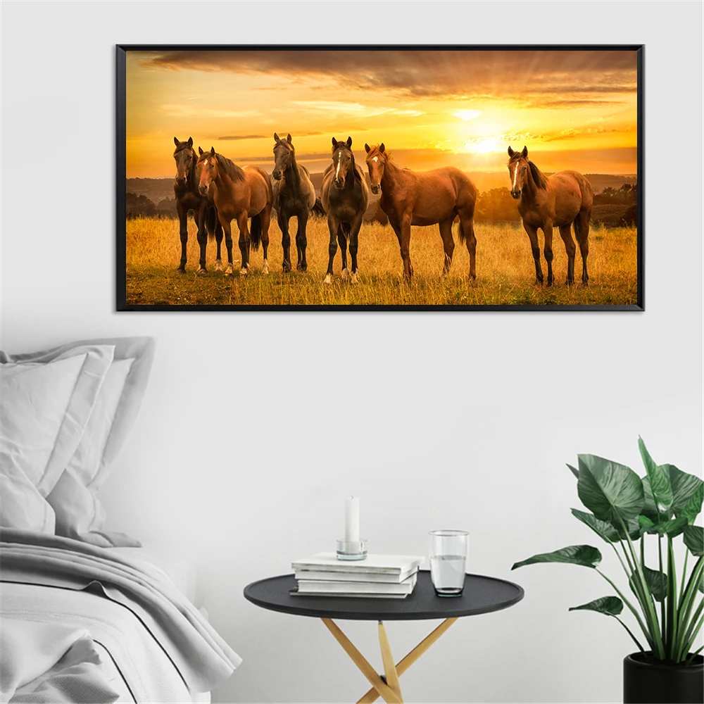 Плакаты и принты большого размера с изображением заката, для спальни, для украшения гостиной, с лошадью, холст живописи с лошадью