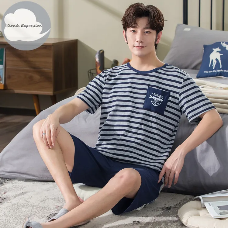 Пижама мужская хлопковая, в полоску, с коротким рукавом, размеры 3XL