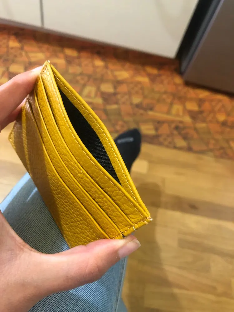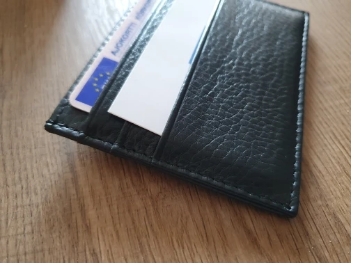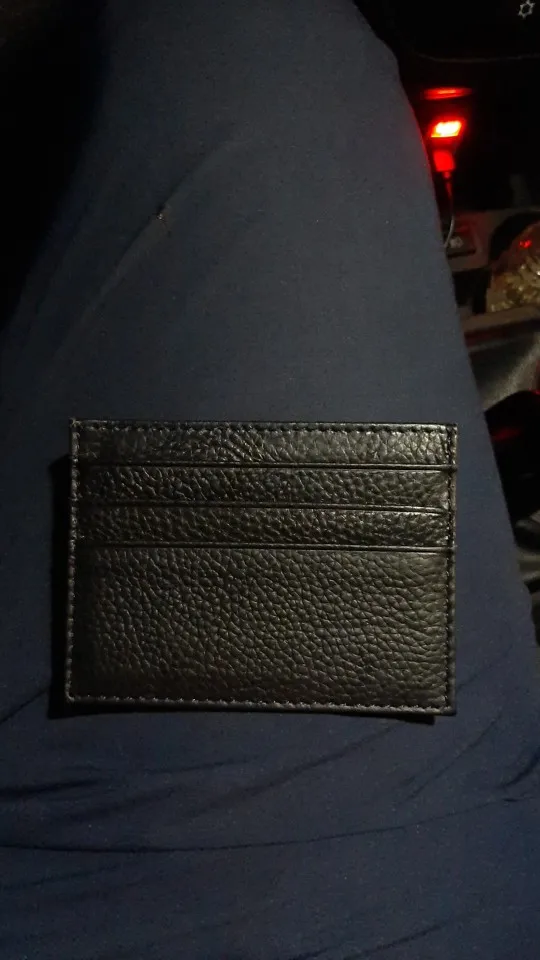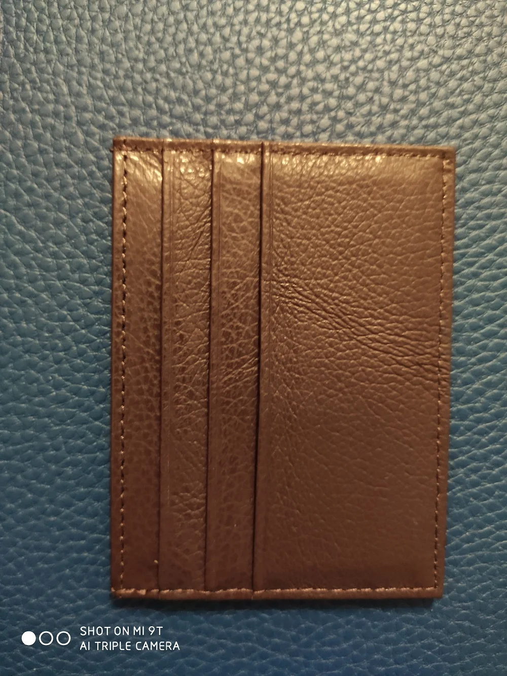 Достойное качество, в некоторых местах какой-то клей, но легко убрался. В Нижний отсек по обе стороны не полностью залазят карты. Получаются на одном уровне с картами во среднем отсеке. Возможно он для визиток. В целом отличный товар. Всё швы ровные и надёжные. В кармане не мешает. Рекомендую!