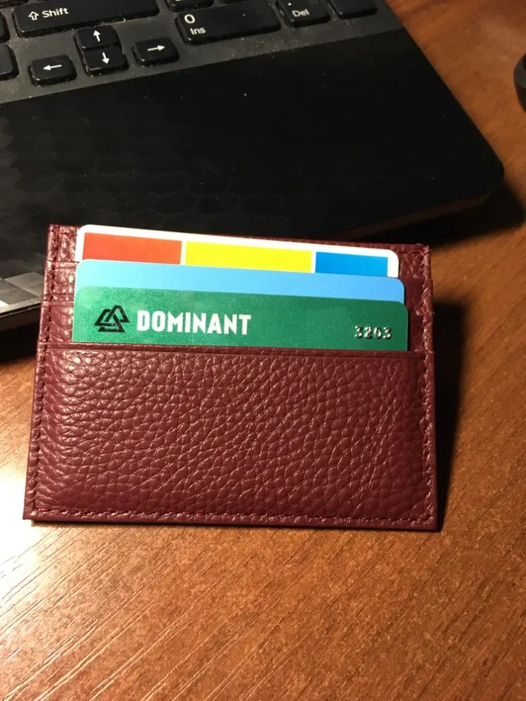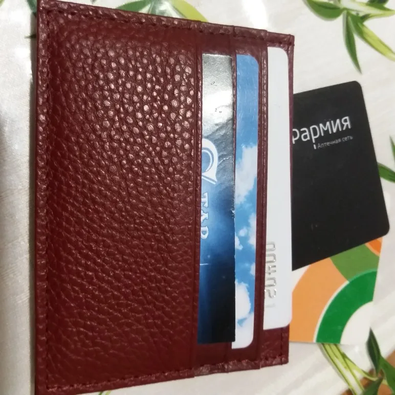 Хорошее качество. Цвет, как на картинке. Хорошо прошито и упаковано. Есть центральное, самое глубокое отделение. Карточка из самого нижнего отделения с обеих сторон перекрывает верхнюю карточку. Не критично, но всё же. Доставили за полтора месяца.