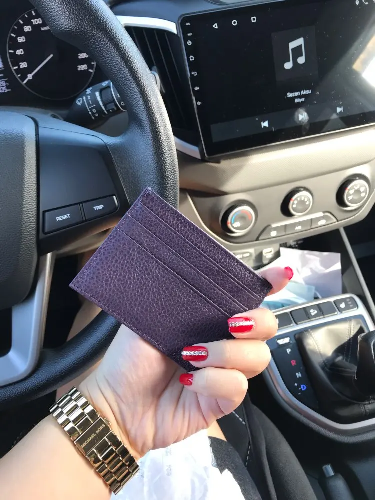 Тонкий чехол из 100% натуральной коровьей кожи с отделениями для карт