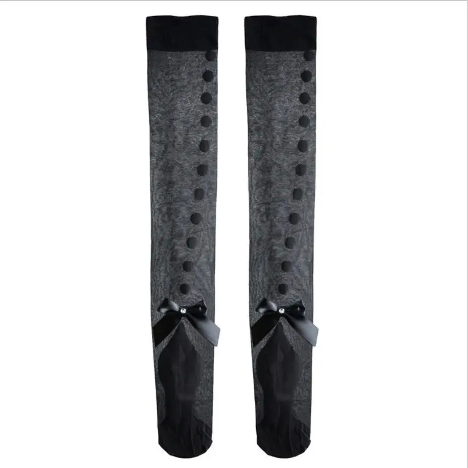 Чулки женские с бантом, белые, черные, в крупный горошек, пикантные чулки выше колена, прозрачные чулки с бантом, чулки до бедра, нижнее белье 489
