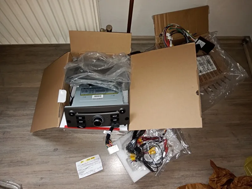 Посылка получена с DHL в течение 6 дней после заказа (Доставка в ЕС). Все компоненты хорошо упакованы в оригинальную коробку. Получил также два бесплатных подарка: камера заднего вида и пластиковый инструмент для удаления старого автомобильного радио.