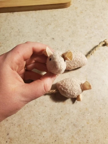 Отличные мыши!Я бы их сфотографировала,но кошке они очень понравились и она уже растащила из по всему дому.
