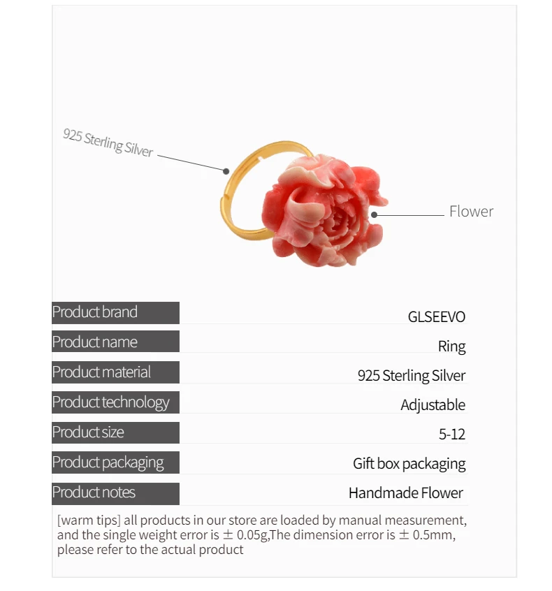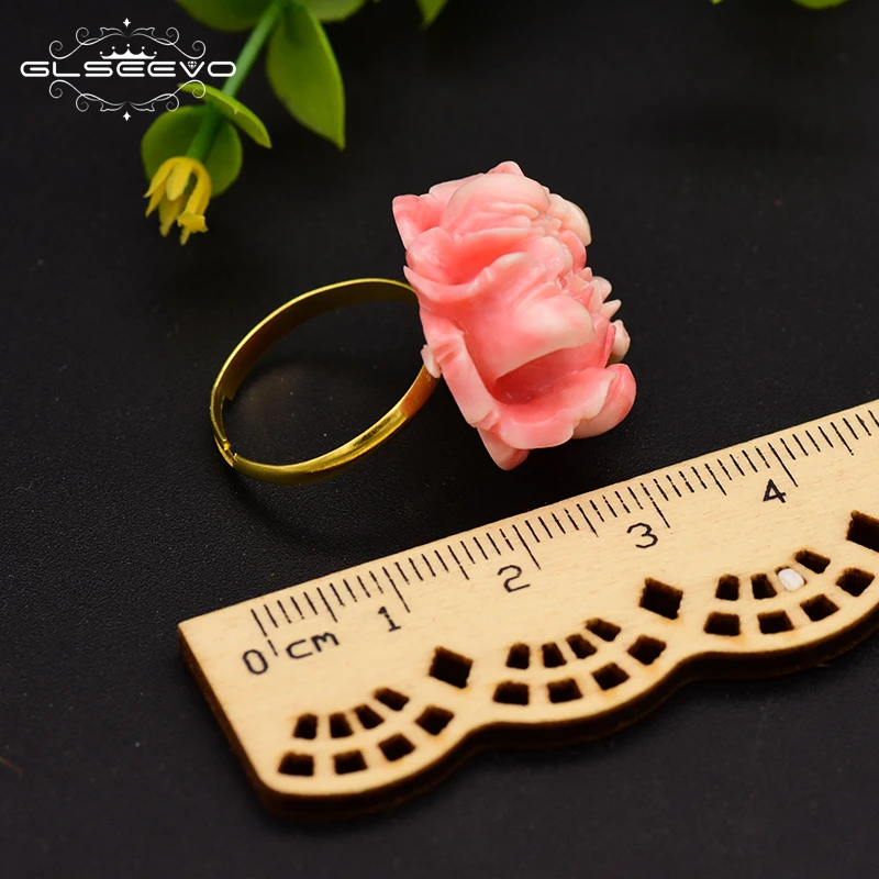 Женское вечерние ЦО с коралловым цветком GLSEEVO, регулируемое кольцо из стерлингового серебра 925 пробы, ювелирное изделие под заказ, GR0223