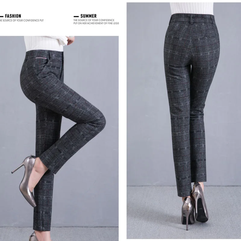 Брюки женские в клетку с высокой талией, длинные штаны для фитнеса с карманами, размера плюс 3XL, 4XL, 5XL, 6XL, весна-осень 2020