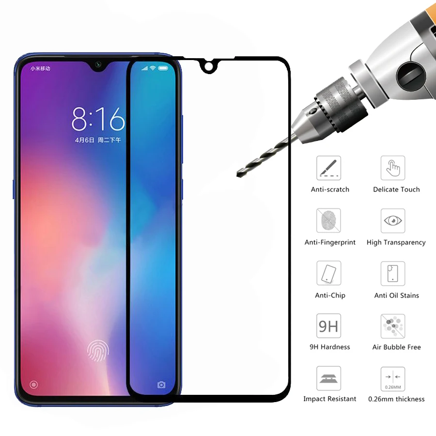 Закаленное стекло с полным покрытием для Xiaomi Mi 9, защита экрана...
