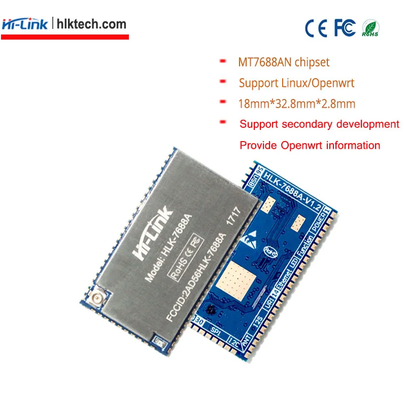 HLK-MT7688AНа основе MT7688ANЭто модуль IOT с низкой стоимостью и низким энергопотреблением, разработанный Hi-Link. МодульПоддержка Linux,Операционная система OpenWRTИ разработка на заказ. Он может быть широко применен к смарт-устройствам или облачным сервисам с его богатым интерфейсом и мощными процессорами.