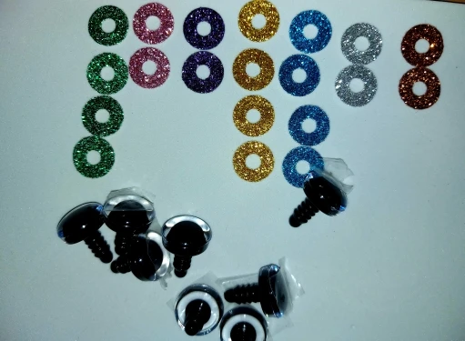 Очень хорошие глазки, все яркие, хорошо держится, застёжки туговато, если нагреть, то хорошо застёгиваются. Кто вяжет игрушки, берите, не пожалеете, они похожи на искорки.