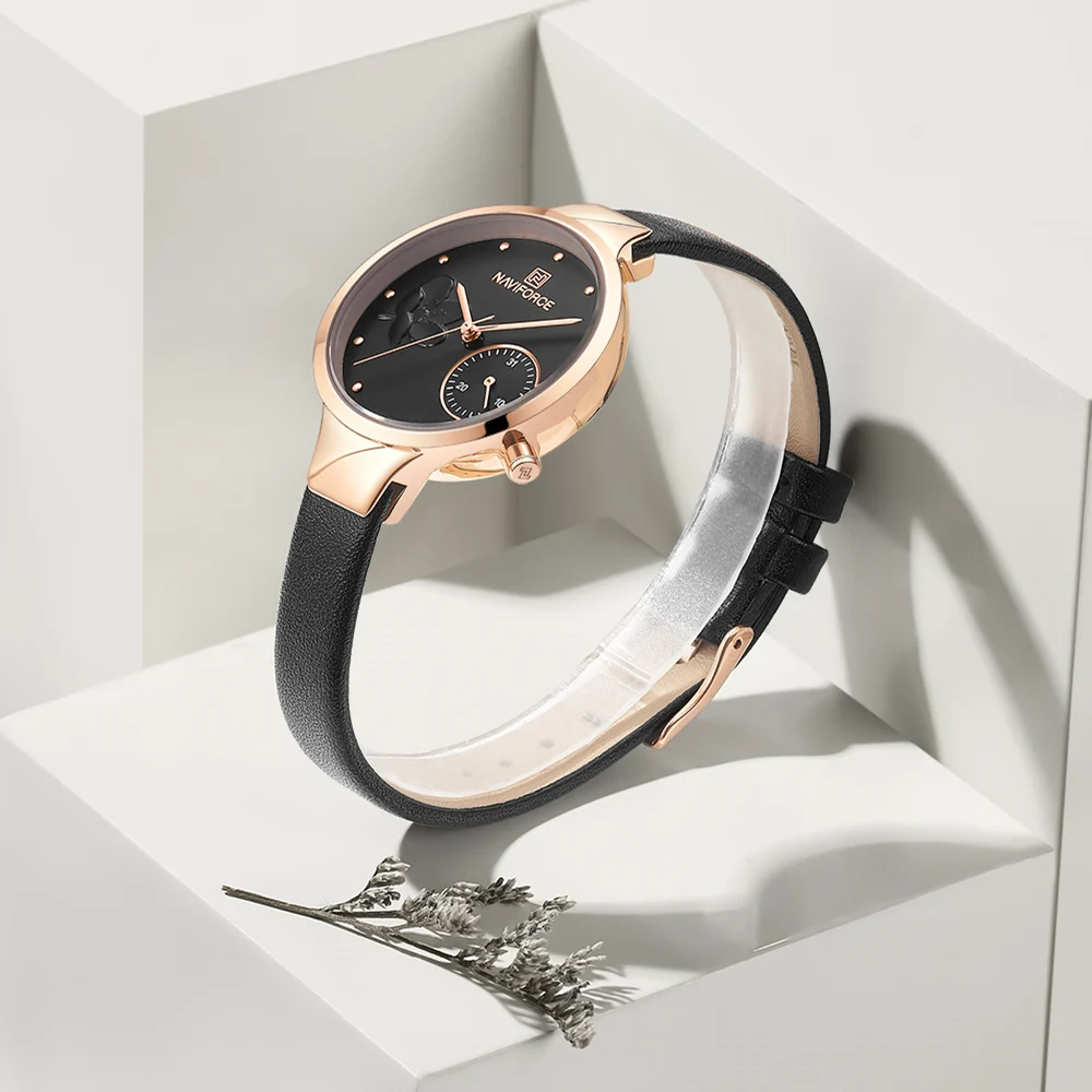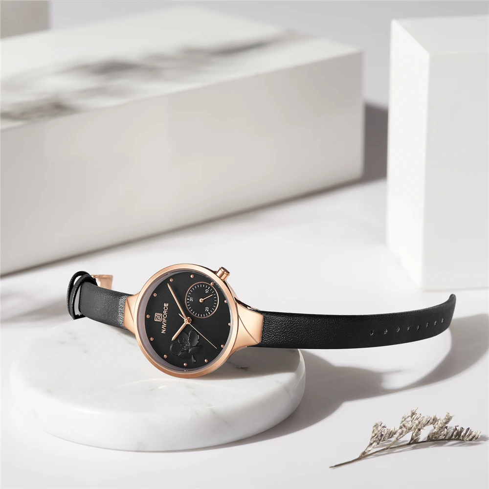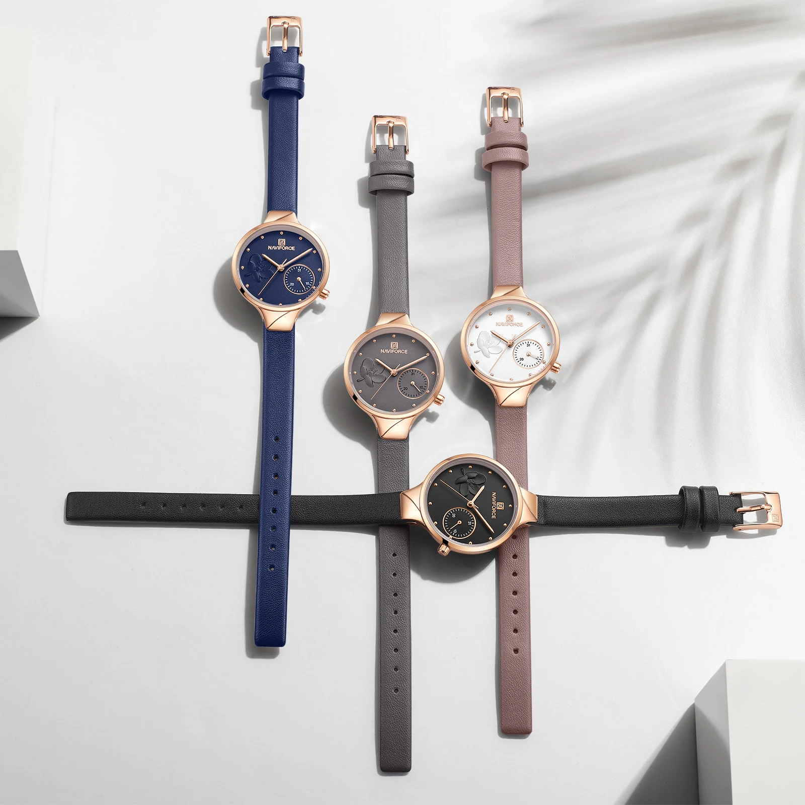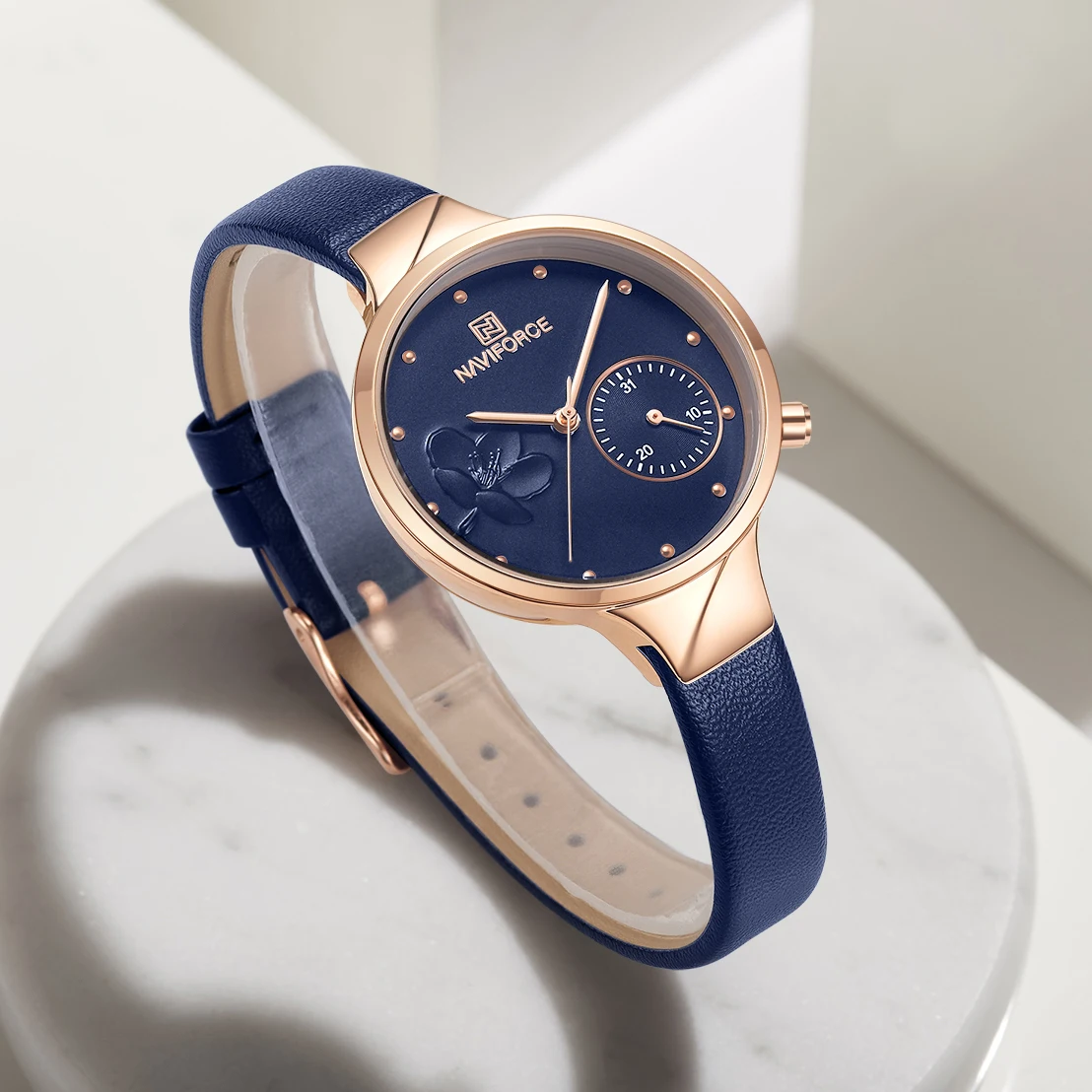 NAVIFORCE модные синие кварцевые женские часы с кожаным ремешком высокое качество повседневные водонепроницаемые наручные часы подарок Relogio feminino