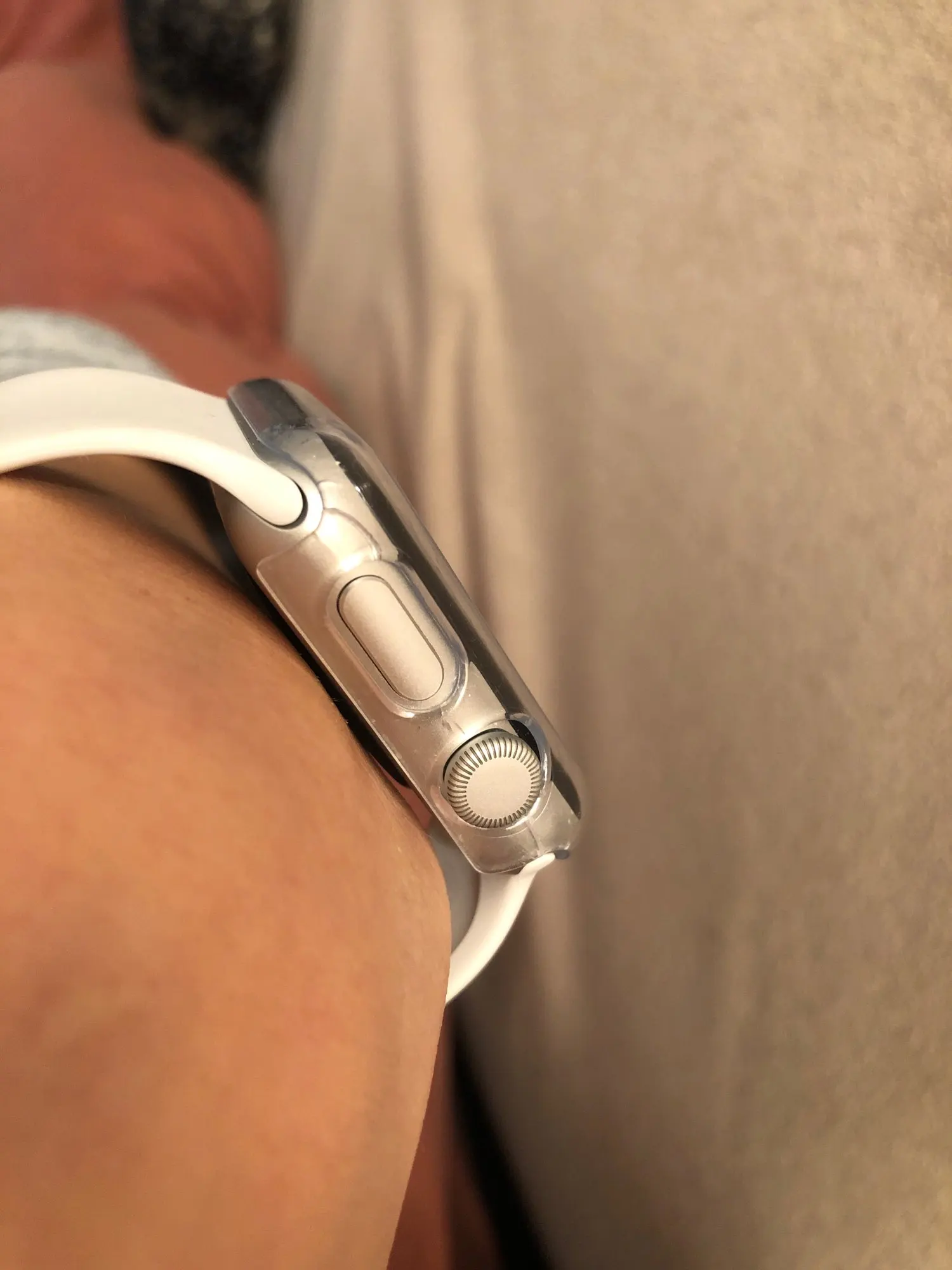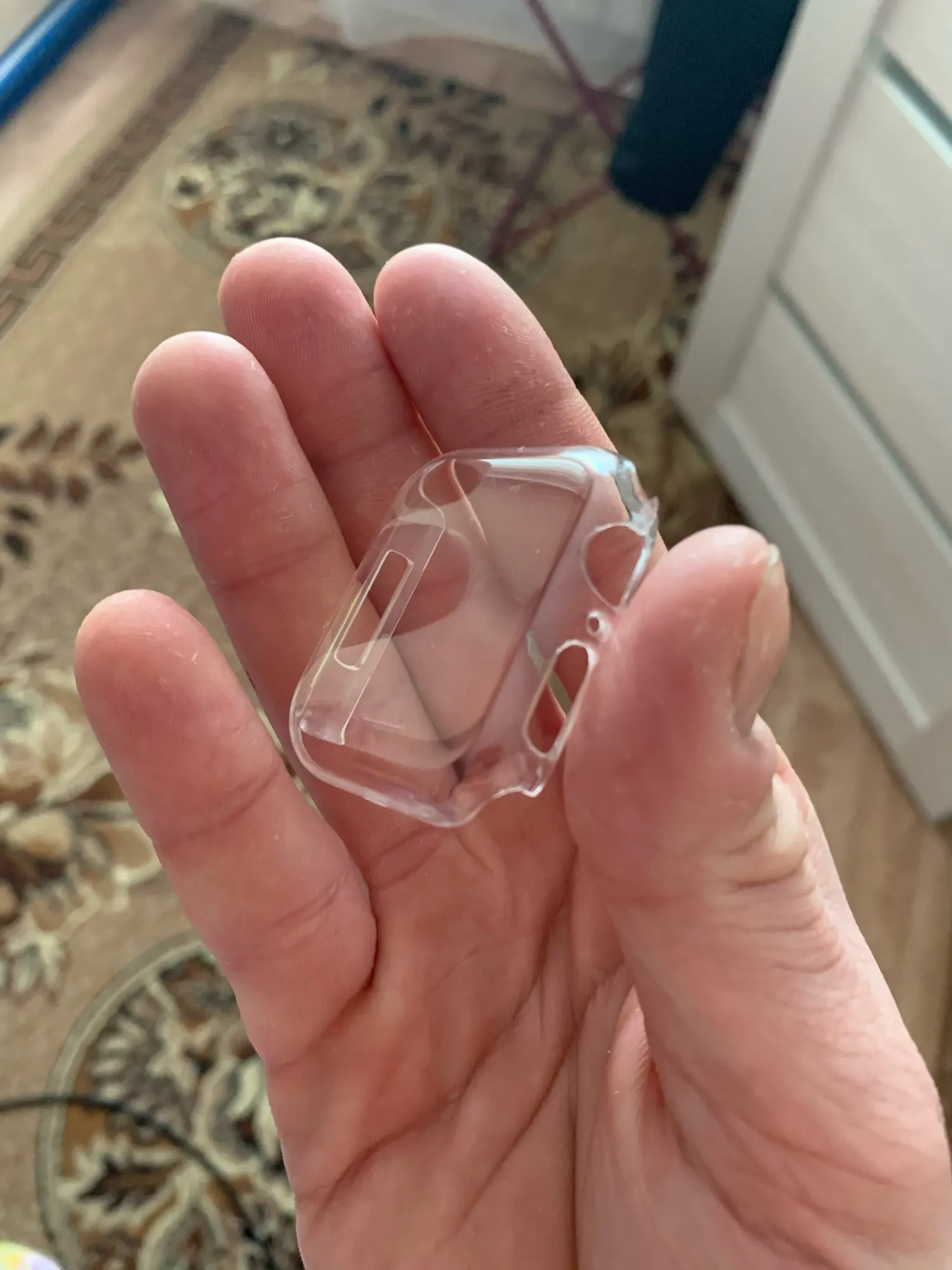 Удобно, что можно открыть одной рукой, когда под чехол попадает влага. Но быстро царапается, с силиконовым (был до этого) такого не замечала. В целом, смотрится аккуратнее, даже не заметно, что Часы в чехле. И пластик не желтеет со временем, что тоже приятно