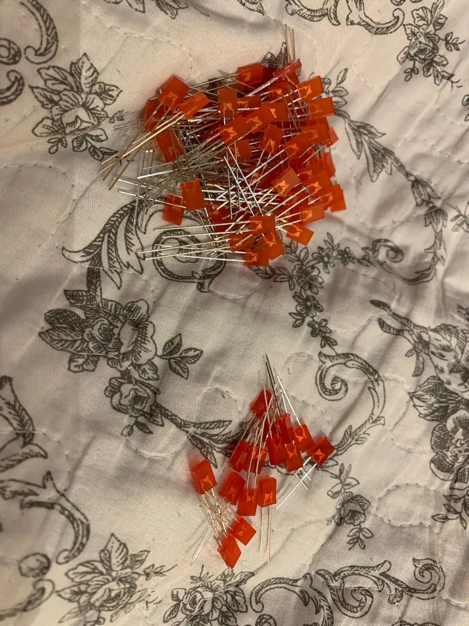 Светодиоды прибыли в Японию относительно быстро даже с учетом возможных задержек, связанных с ковриком. Упаковка из 100 в реальности имеет 4 дополнительных светодиода, которые хороши от продавца. Однако 15 из них имеют более короткие (16 мм) ножки, а остальные имеют 25 мм ножки. Обычно это не большая сделка, если вам не нужны более 100 светодиодов с более длинными ножками (К сожалению, нет). Прямое напряжение такое же, что и 1,8 В. Каждый диод работает!