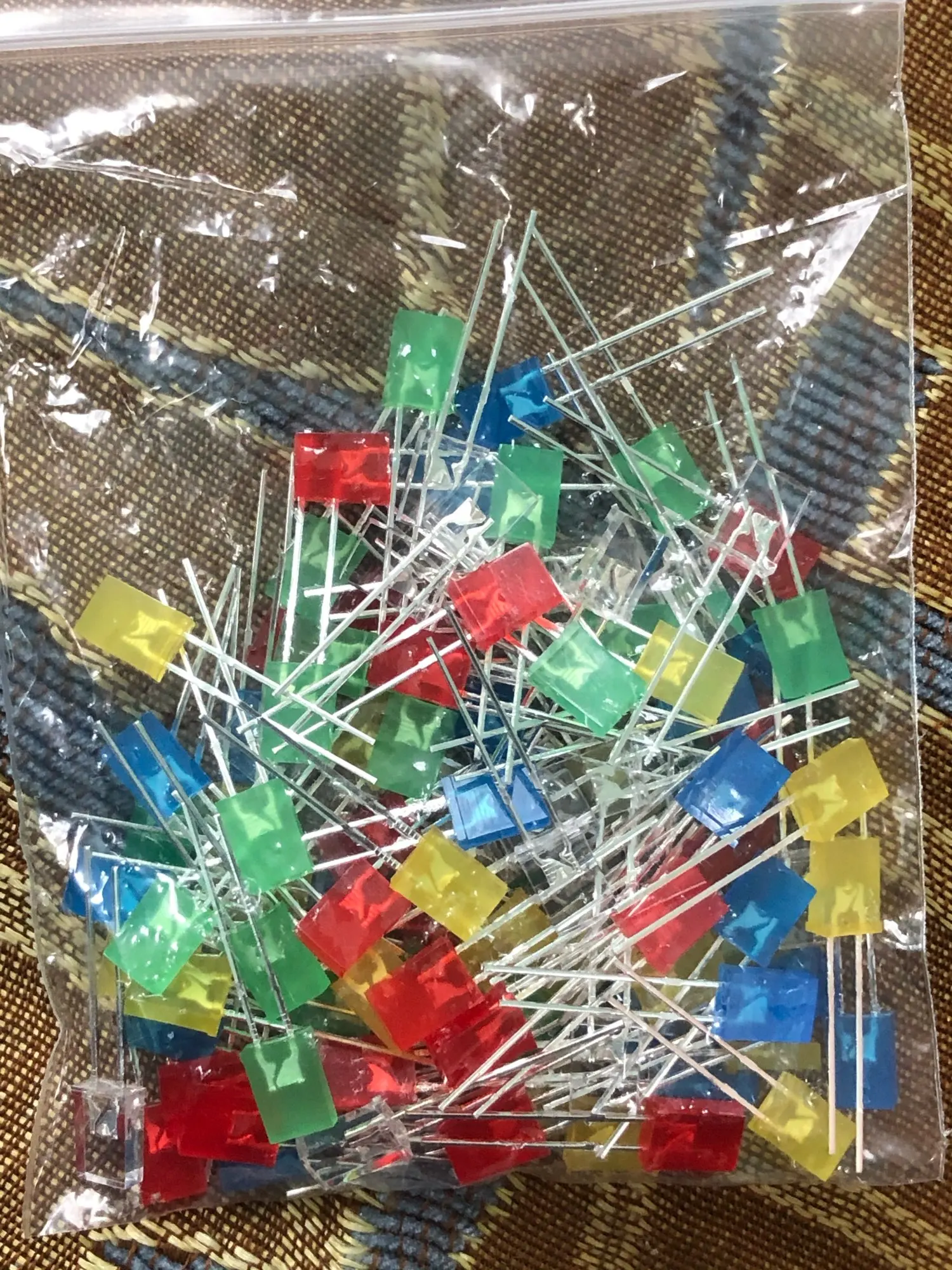 Заказывал 20.10 пришли 09.12 в московскую область. В целом хорошие светодиоды, ножки не помяты. Светят ярко но не ослепляют. Сначала показалось что их слишком мало, разобрал по кучкам и пересчитал оказалось все верно. 5 цветов по 20 светодиодов. Выборочно проверил по три штуки каждого цвета, все светят одинаково. Как примерно они светят можете увидеть на фото .