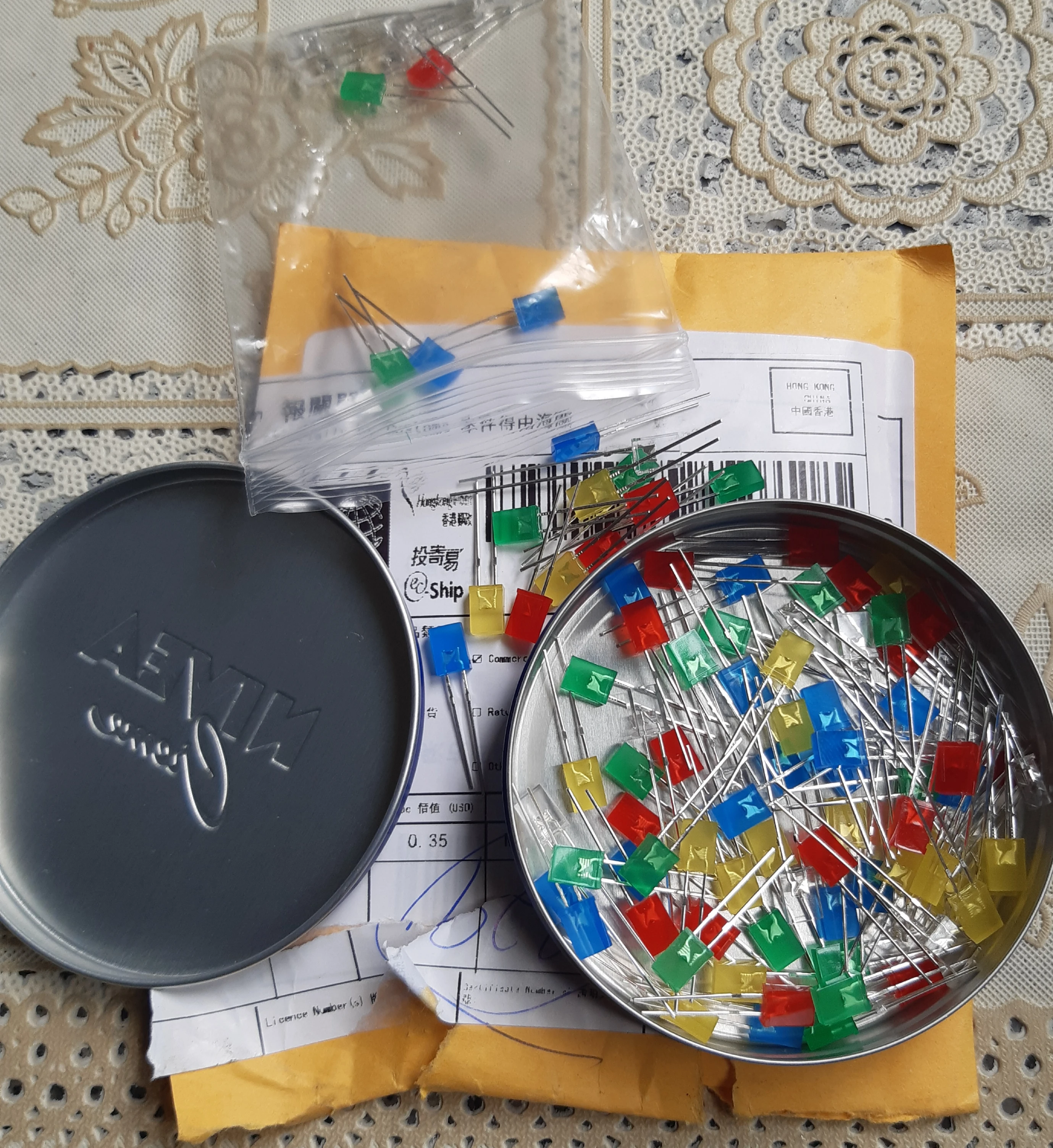 посылка добиралась пешком из китая , довольно долго . светодиоды хорошие , как в описании , но продавец забыл положить в заказ белые светодиоды , остальные как в описании , по 20 штук . по спору вернули часть денег , спасибо АлиЭкспрессу .