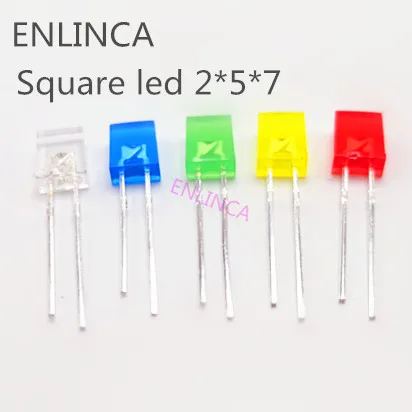 100 шт. 2X5X7 квадратный светодиодный 257 красный светильник излучающий диод белый желтый красный зеленый синий электронный diy kit