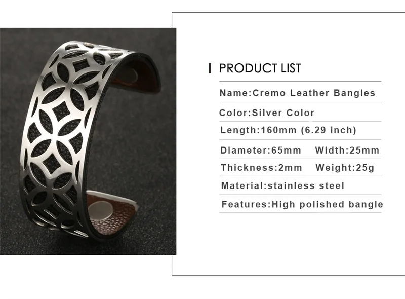 Браслеты из нержавеющей стали Cremo, женские манжеты, сменные кожан...