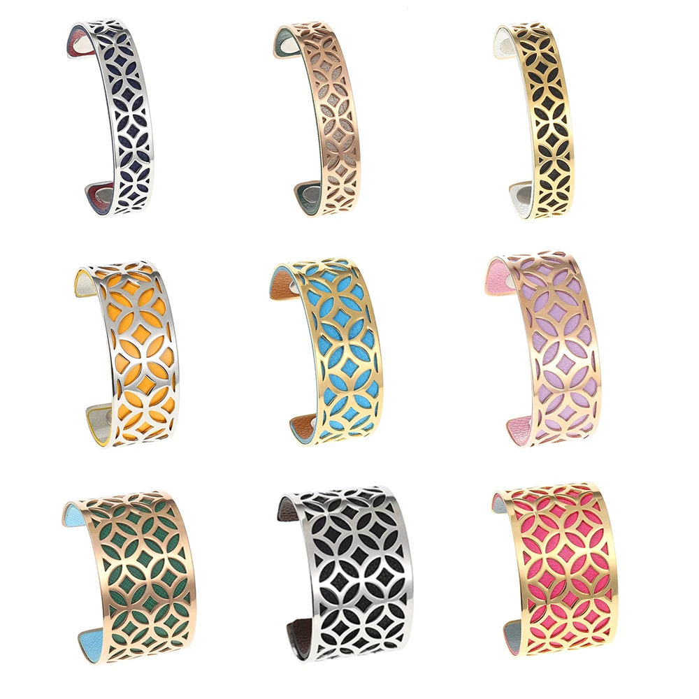 Женский Браслет-манжета из нержавеющей стали, со сменной кожей