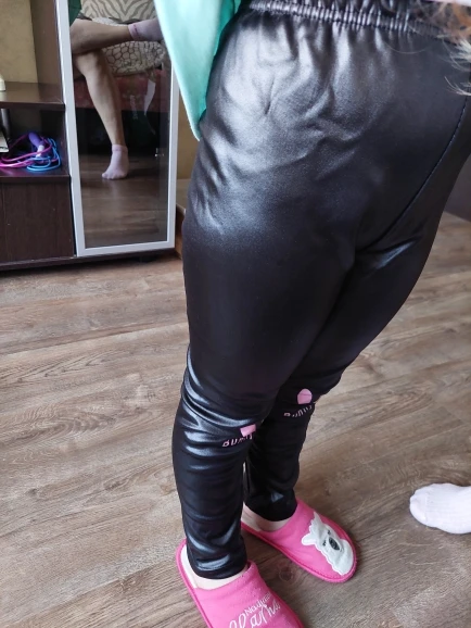не кожа, а больше похожа на лайкру по блеску, внутри утеплитель. размер вообще жуть. заказывала 7т(130) на рост 110см, но они короткие, от заявленных 74см всего 68 см, но зато широкие, все собрались. в общем не понравились. Пожалела что заказала