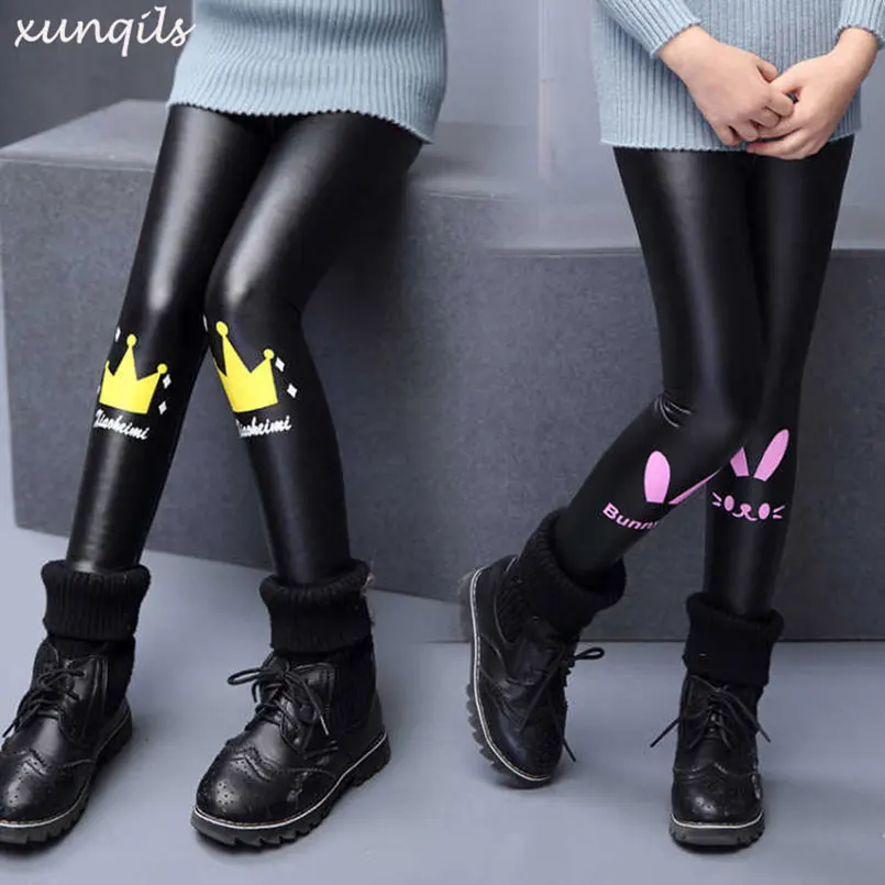 Зимние леггинсы для девочек; Кожаные теплые брюки; Детские леггинсы; Детские утепленные брюки; Одежда с рисунком для малышей