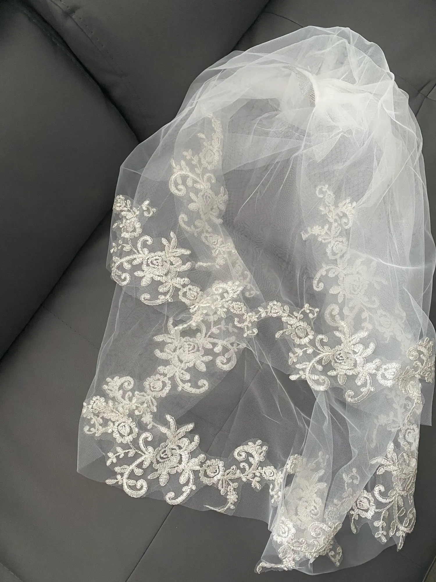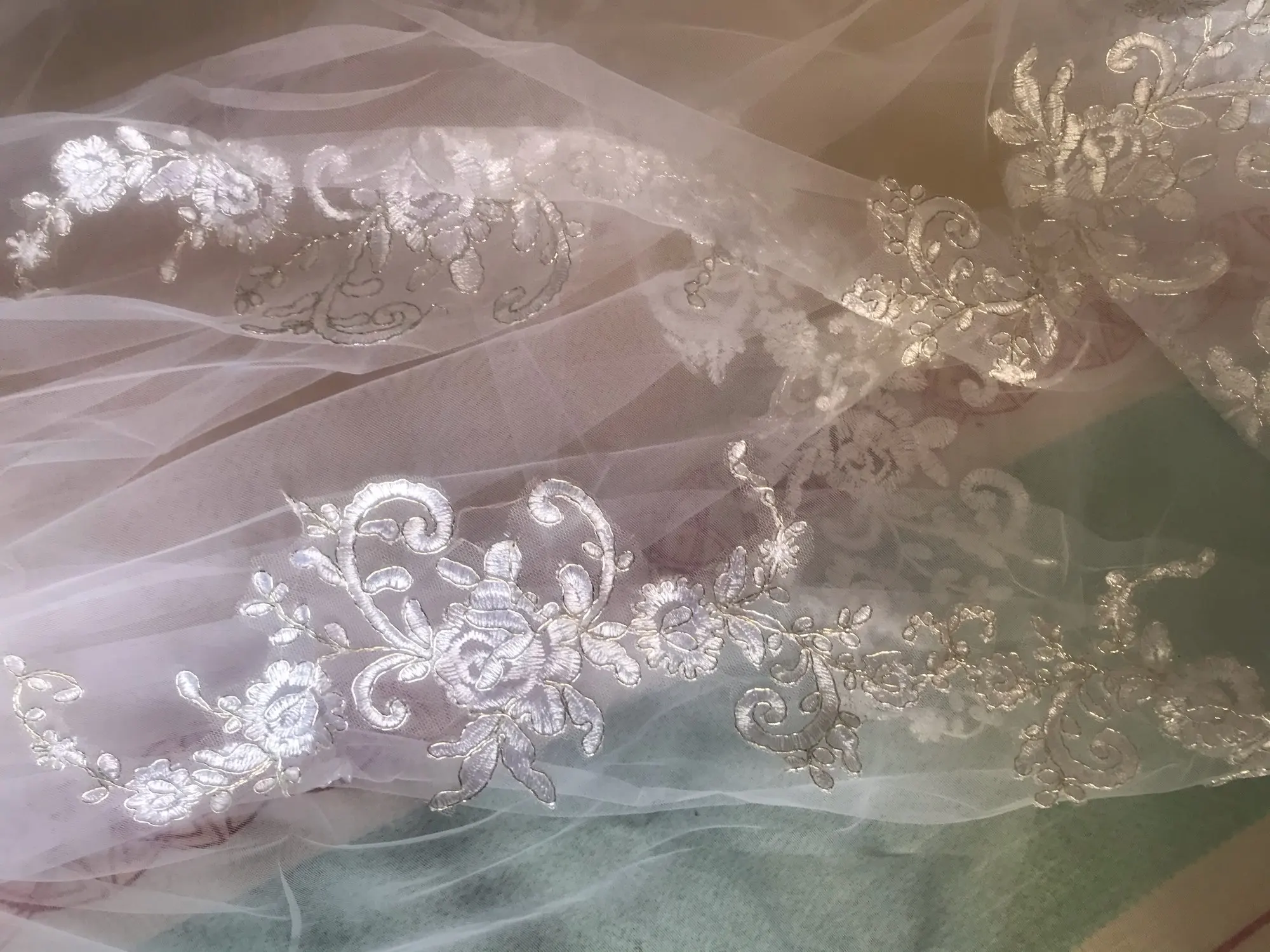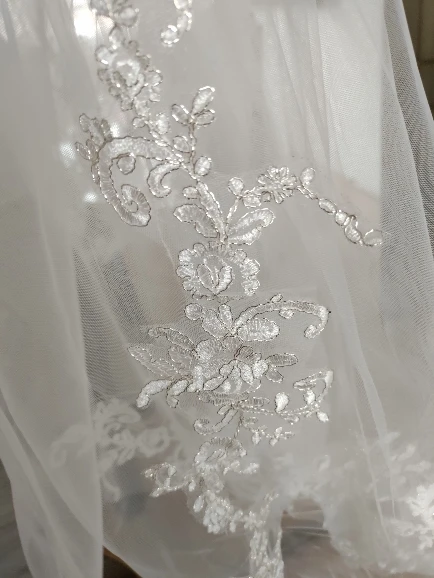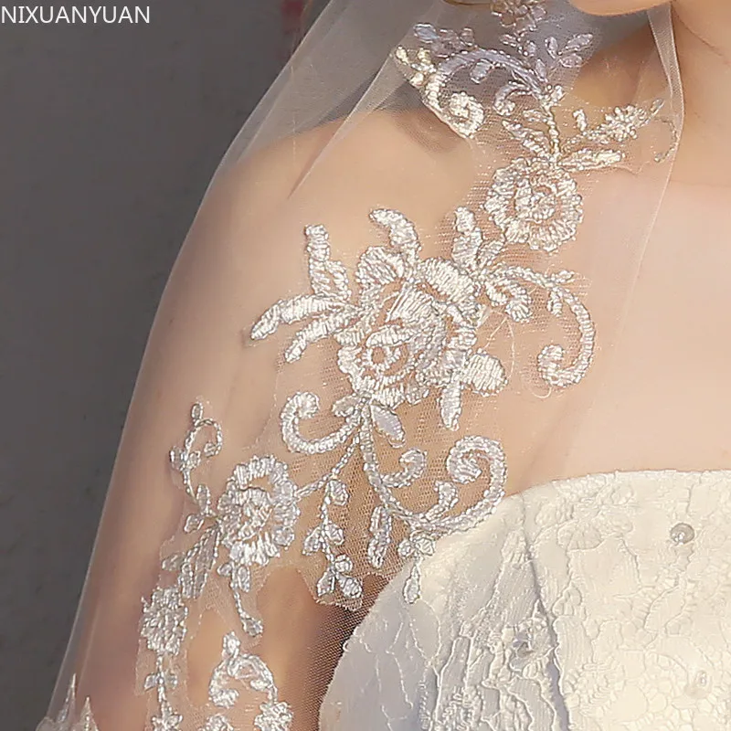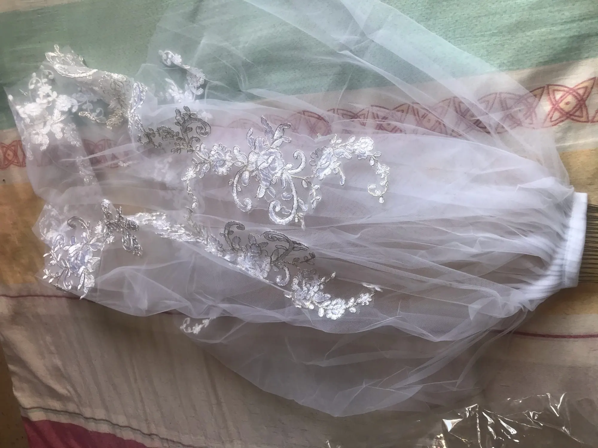 Фата свадебная короткая с кружевом, импортная серебряная нить, Двухуровневая с гребнем, свадебные аксессуары, 2021