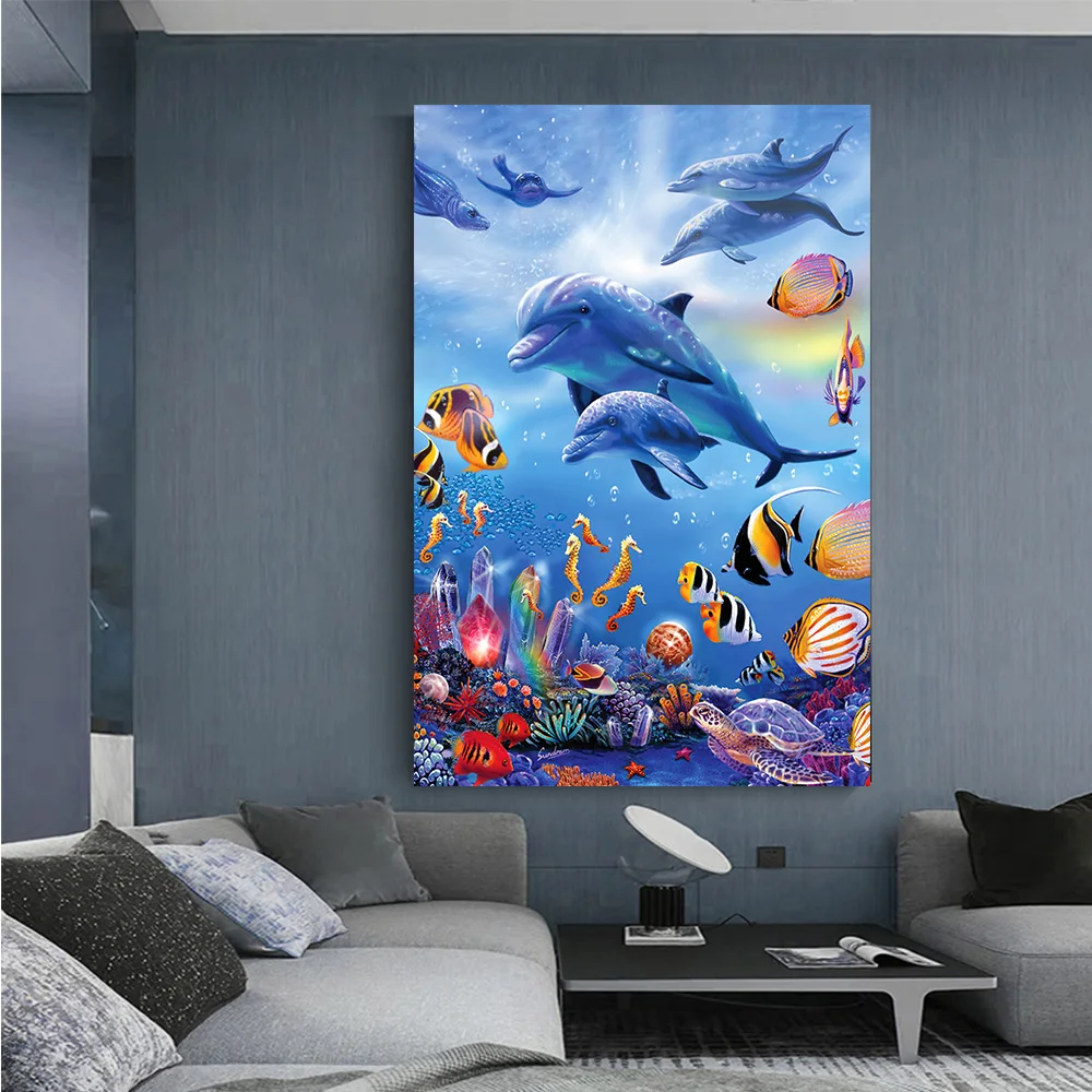 DIY алмазная живопись морское царство черепаха дельфинами рыбками и полная Алмазная вышивка море животный принт коралловый полная алмазная живопись мозаика море