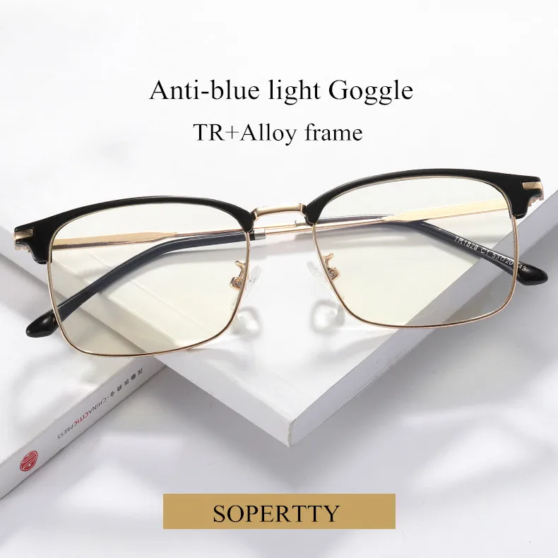 Компьютерные оптические очки, мужские, анти-синий светильник, черные полуоправы, унисекс, TR90, полуметаллические очки B1828