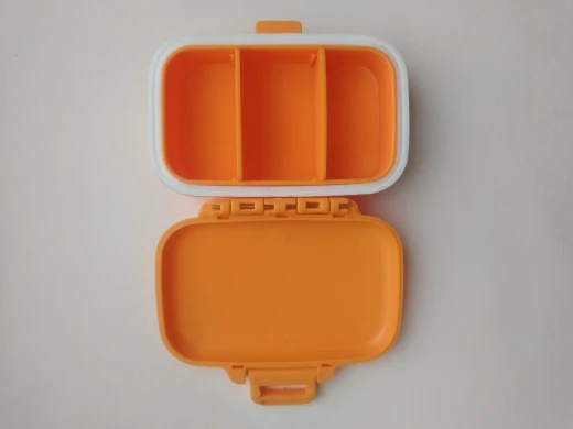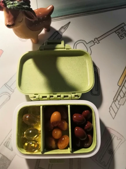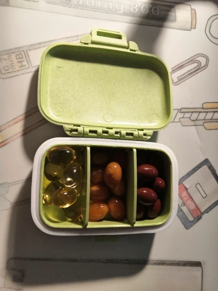Отличная таблетница, места много, на 3 отделения. К тому же она герметичная. Резиночка по краю защищает от протекания или, например, запахов.