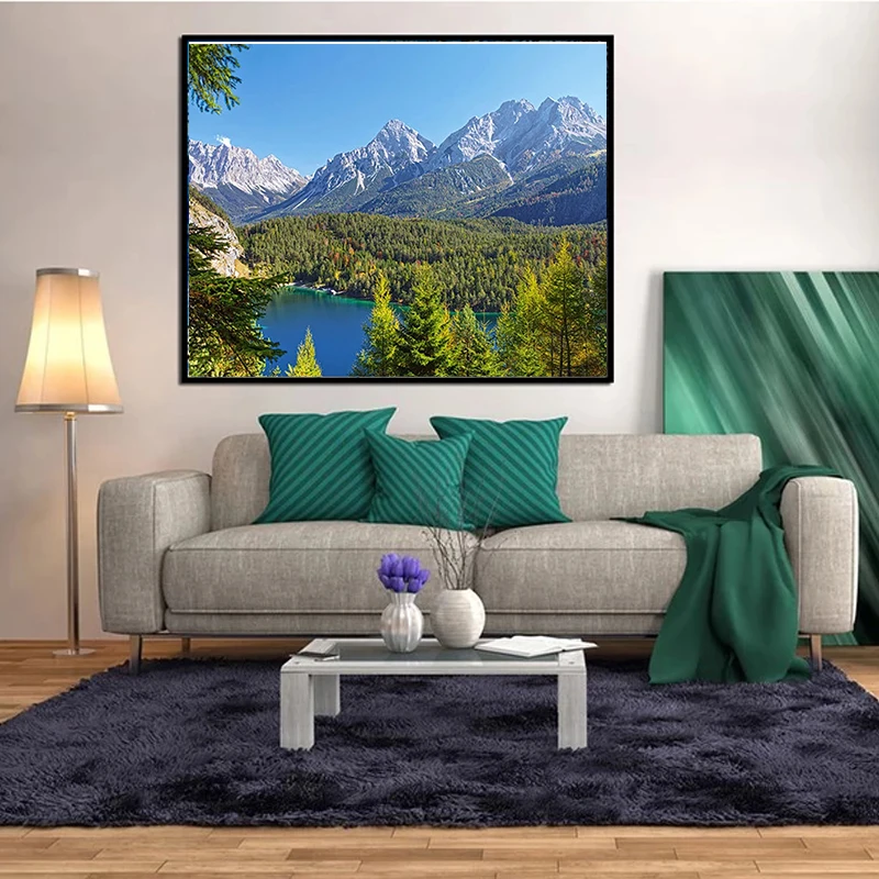 Алмазная вышивка зеленый лес, природный пейзаж, большая алмазная жи...