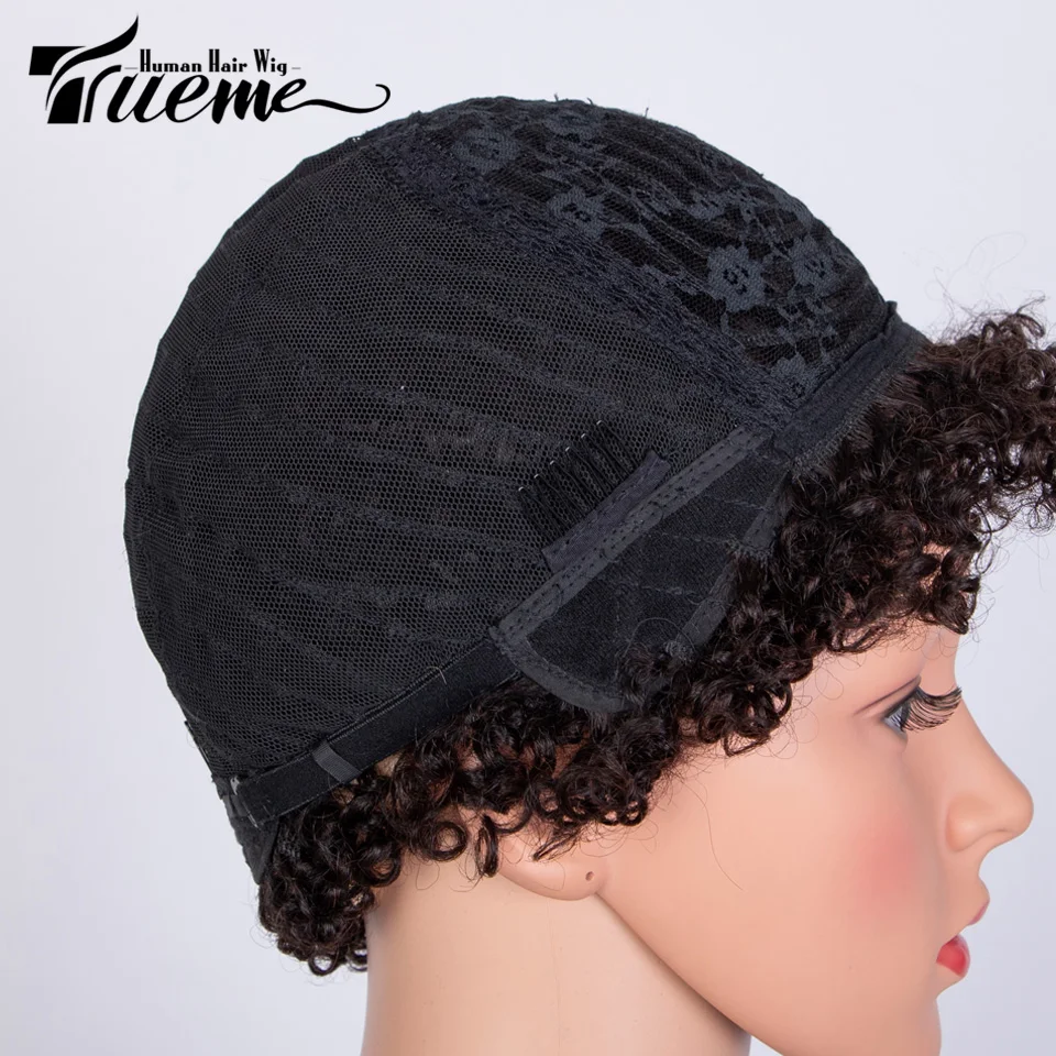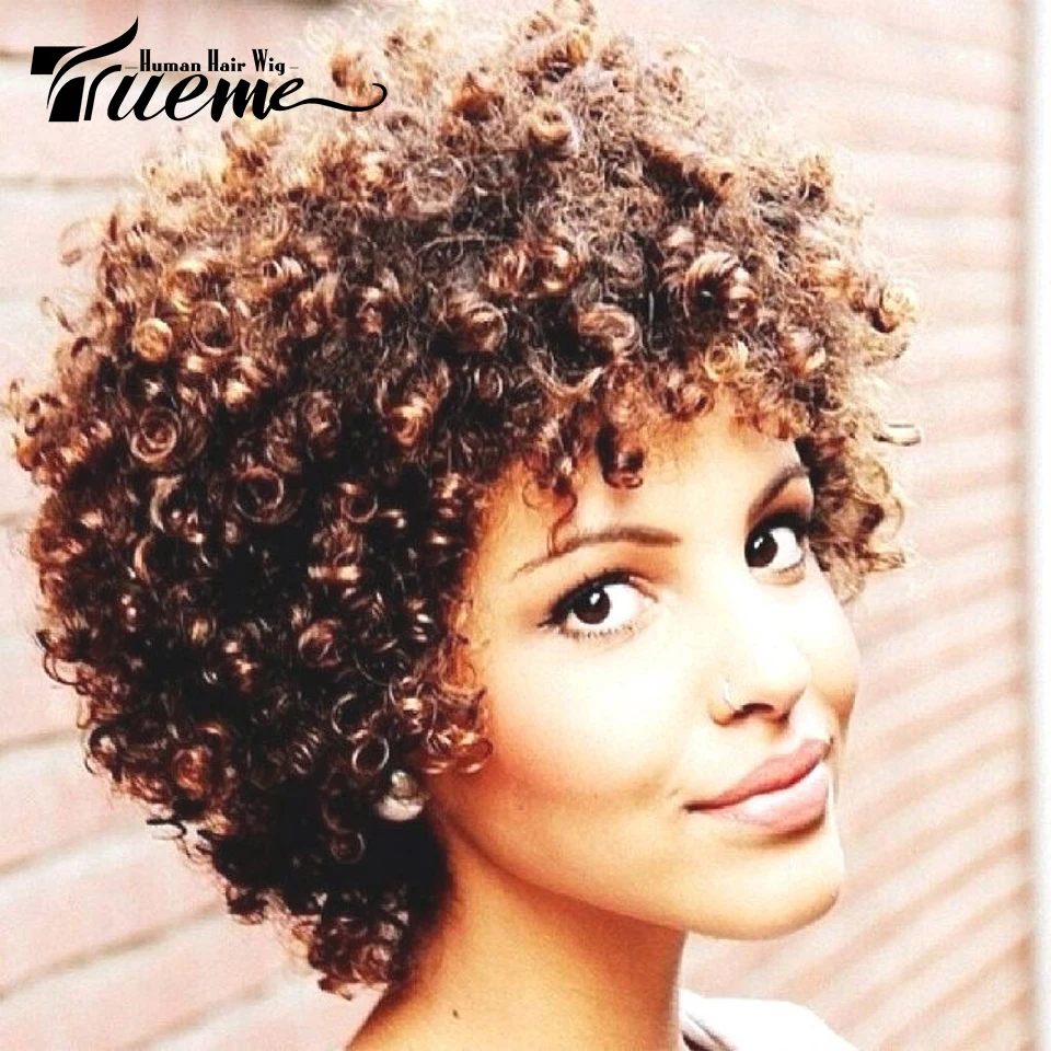 Кудрявые афро-парики Trueme, короткие кудрявые парики для женщин, черные, Коричневые Бразильские кудрявые человеческие волосы, парик с полной машинкой