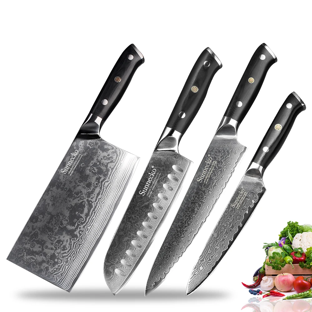 Набор кухонных ножей из дамасской стали SUNNECKO, 4 шт., ножи шеф-повара Santoku, японские острые лезвия VG10, ручные инструменты для приготовления пищи