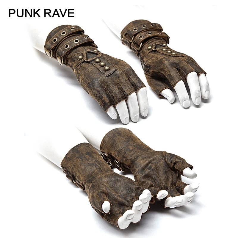 Мужские перчатки без пальцев PUNK RAVR, неэластичные перчатки без пальцев в стиле стимпанк из искусственной кожи, мотоциклетные перчатки, одна пара, Готические перчатки в стиле милитари