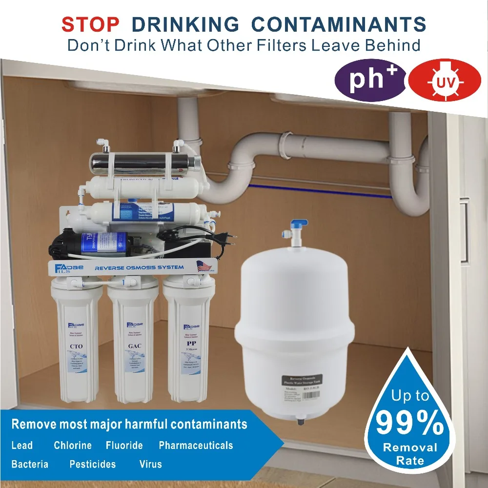 7-Этап Undersink обратного осмоса питьевой воды фильтрации системы с щелочной реминерализации фильтр и UV-100GPD специально разработан для жилых помещений.