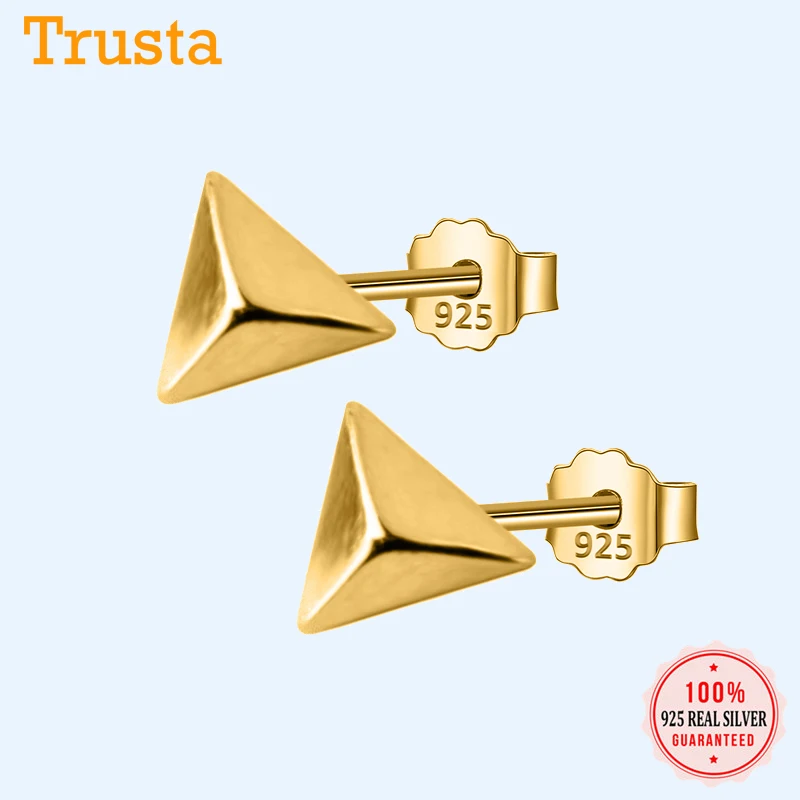 Серьги Trusta в виде треугольника для девочек и подростков, ювелирные изделия из искусственного серебра, золотистыесеребристые, крутой подарок, DS1332, 1 пара