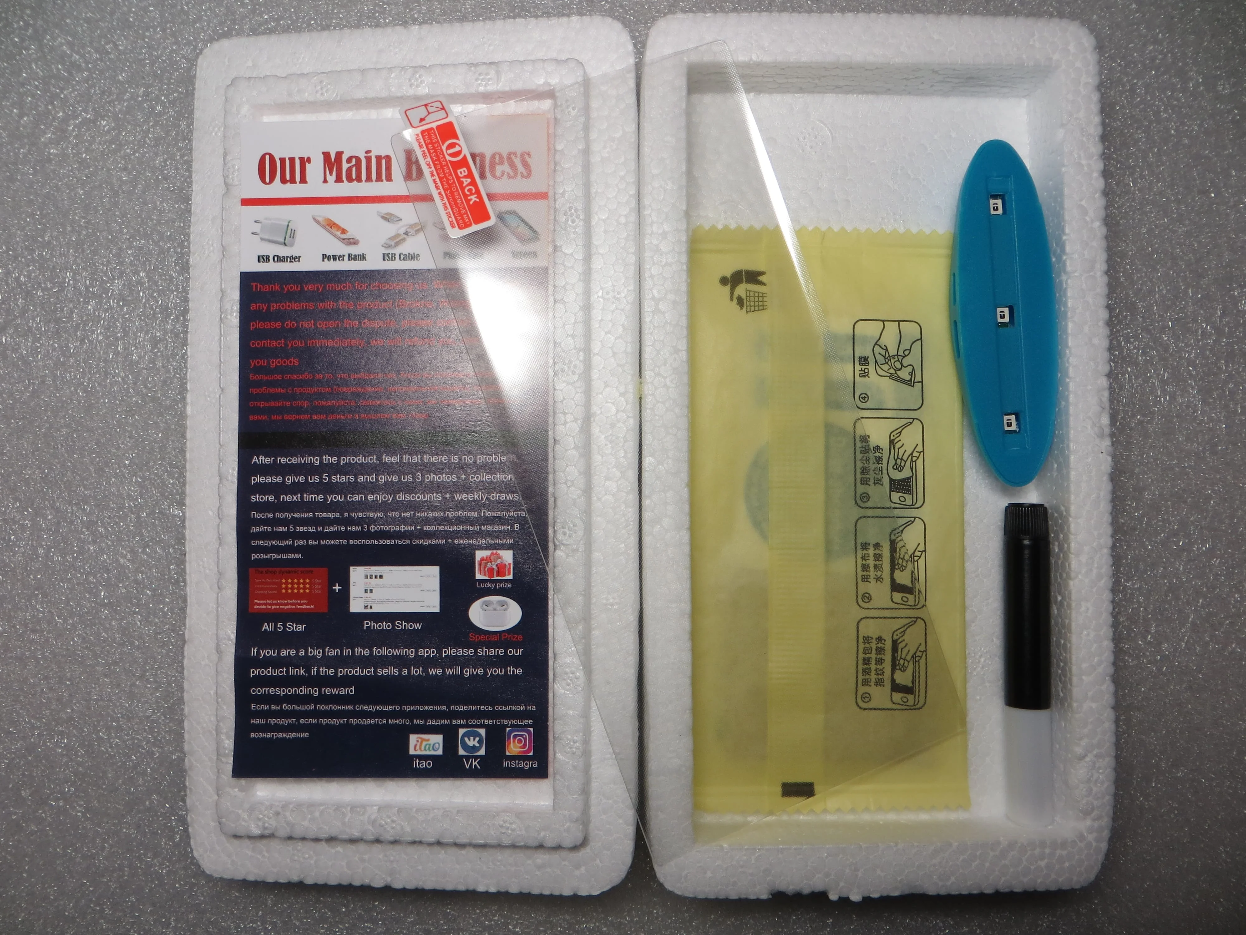 Заказала два стекла - разные товарные странички, но товар приехал одинаковый. Так что не могу однозначно идентифицировать их. Комплект: влажная салфетка, сухая салфетка, стикеры, стекло, тюбик с клеем. Одно стекло не смогла отклеить от подложки, только наклейка снялась. Второе стекло легло пузырями в нижней части, хотя я его не сдвигала и до этого уже клеила стекло другого производителя без подобной проблемы. Обязательно заклеивайте динамик, а также все отверстия и кнопки по периметру изолентой - иначе зальёте клеем! Клей жутко вонючий. От телефона пахнет даже после сушки и протирки. В лампе странный разъём под usb type C. Отпечаток пальца работает, для этого при первом проходе лампой зажала пальцем место датчика. Впечатления неоднозначные.