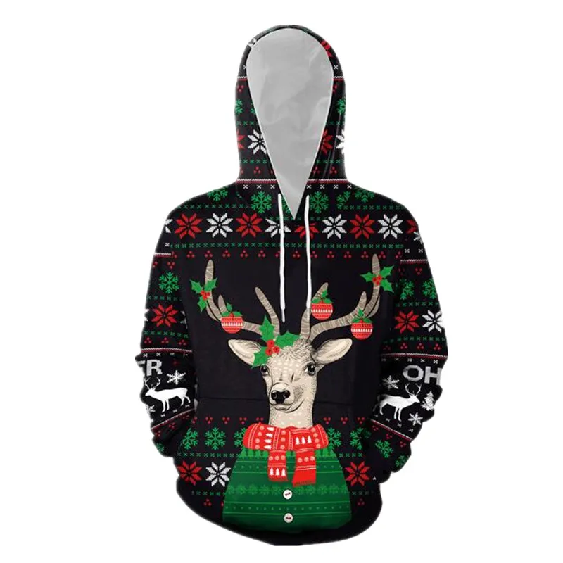 Свитер женский Рождественский с капюшоном, унисекс, Осень-зима