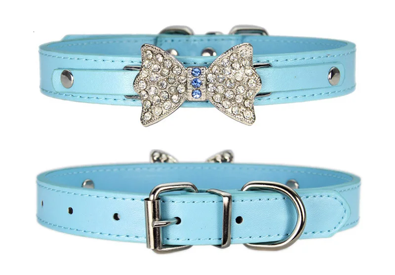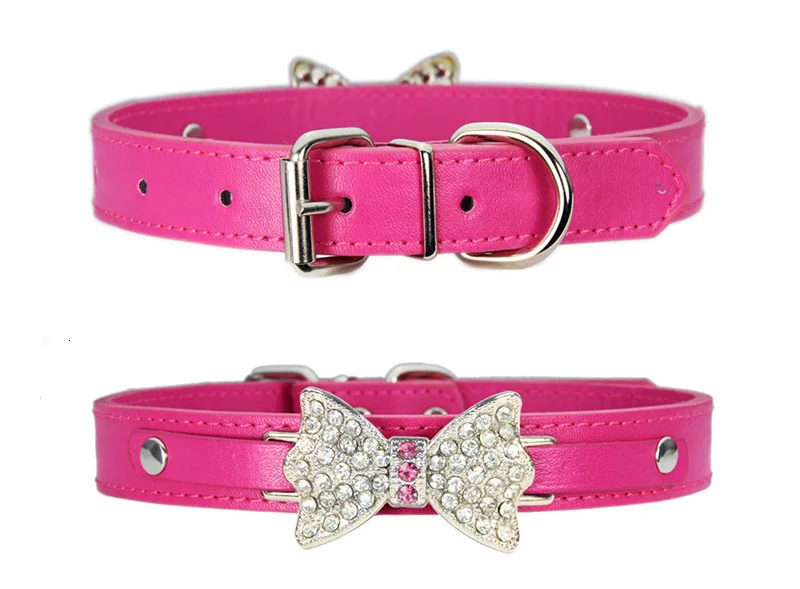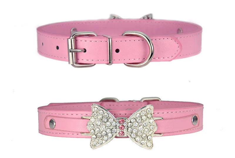 Ошейник для маленьких собак, pawstrip, 5 размеров, кожаный, с бантом, для кошек, украшенные стразы, ошейник для щенков, померанский шпиц, плюшевый ошейник для собак