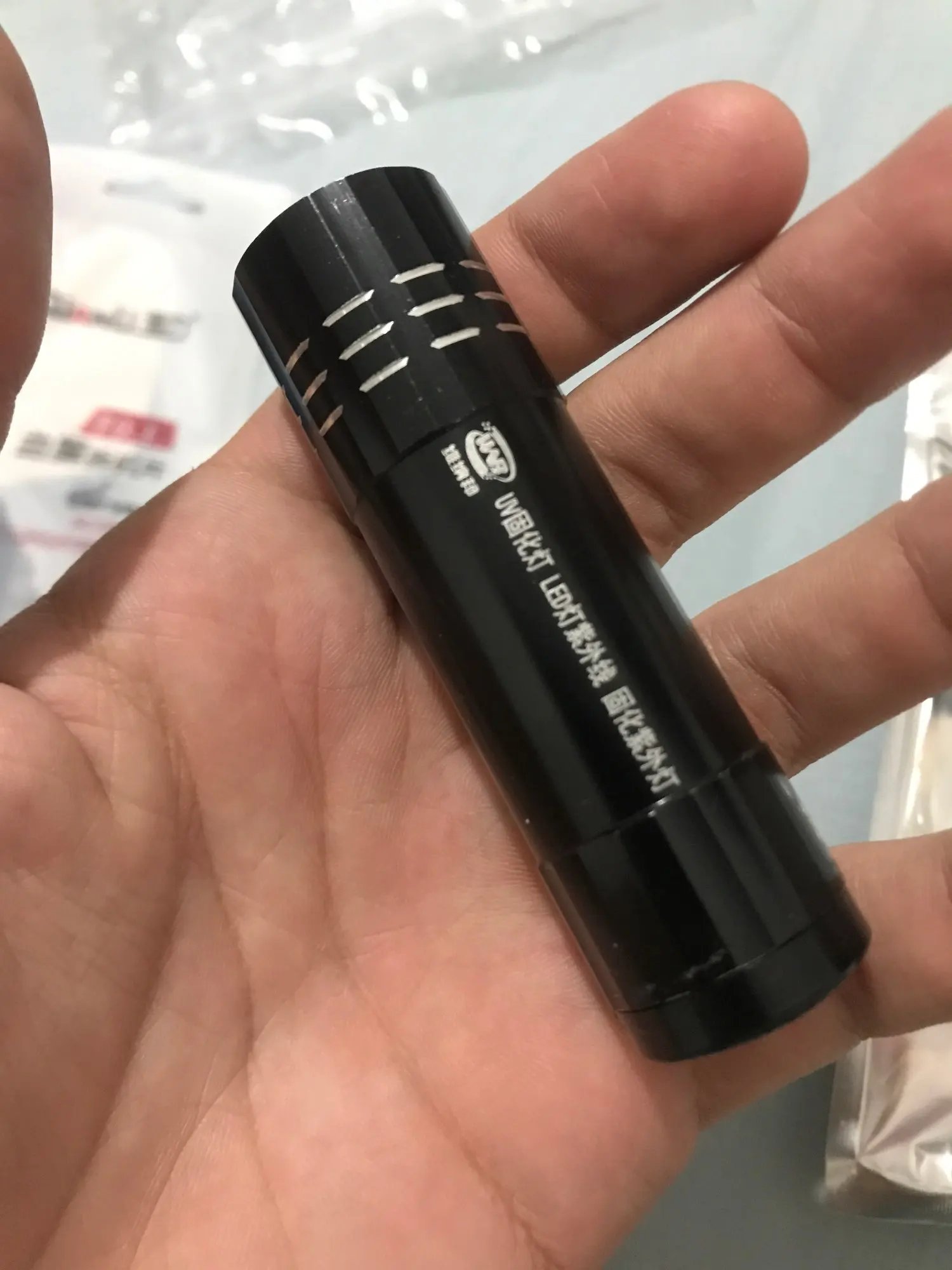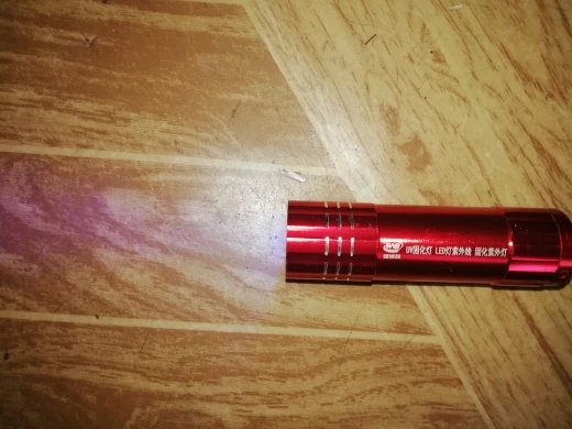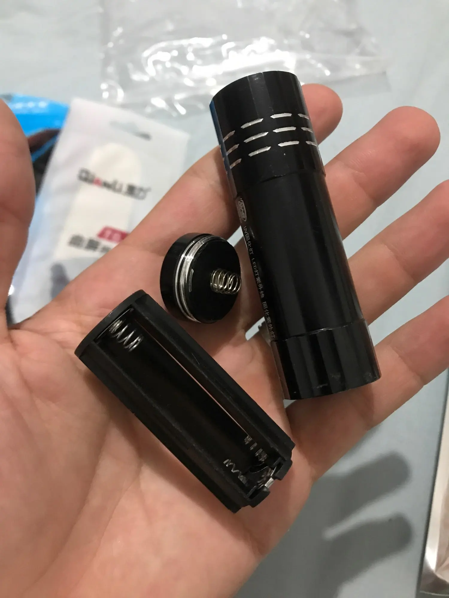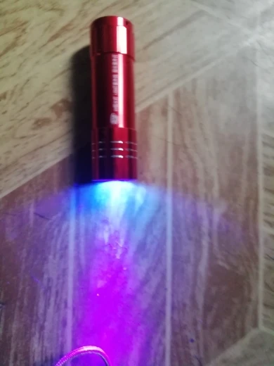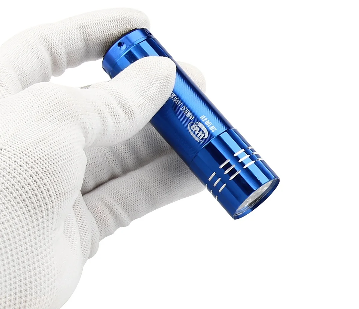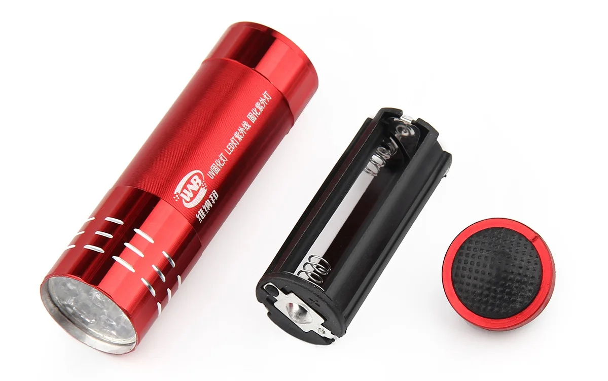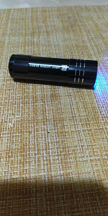 Маленький алюминиевый фонарик с девятью ультрафиолетовыми светодиодами.