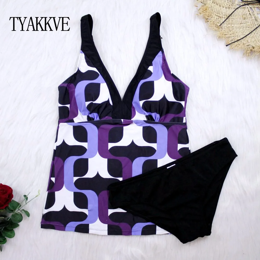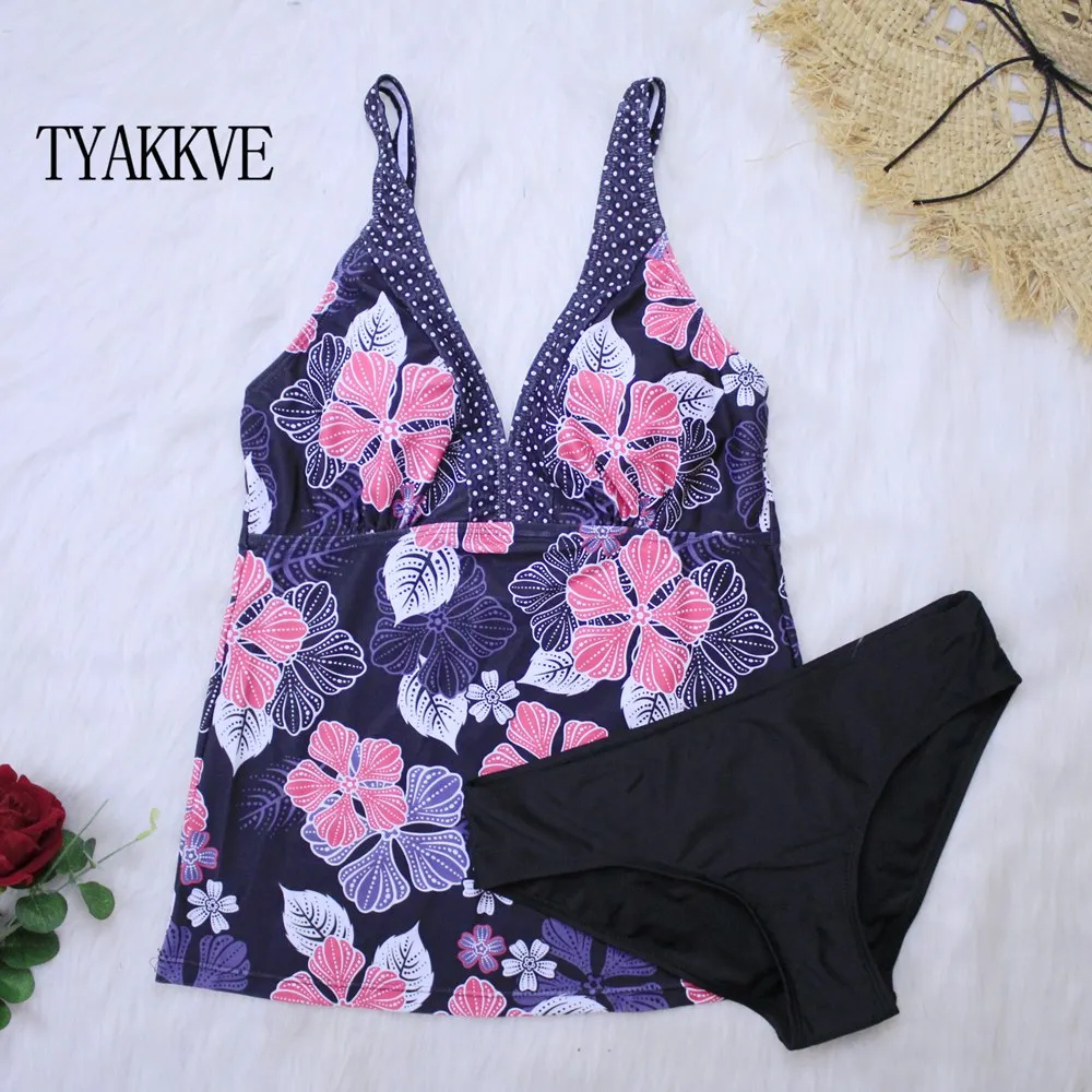 Сексуальный купальник-танкини размера плюс, Женский винтажный купальник-бикини с пуш-ап, пляжная одежда, купальный костюм с принтом, женский купальный костюм, 2020