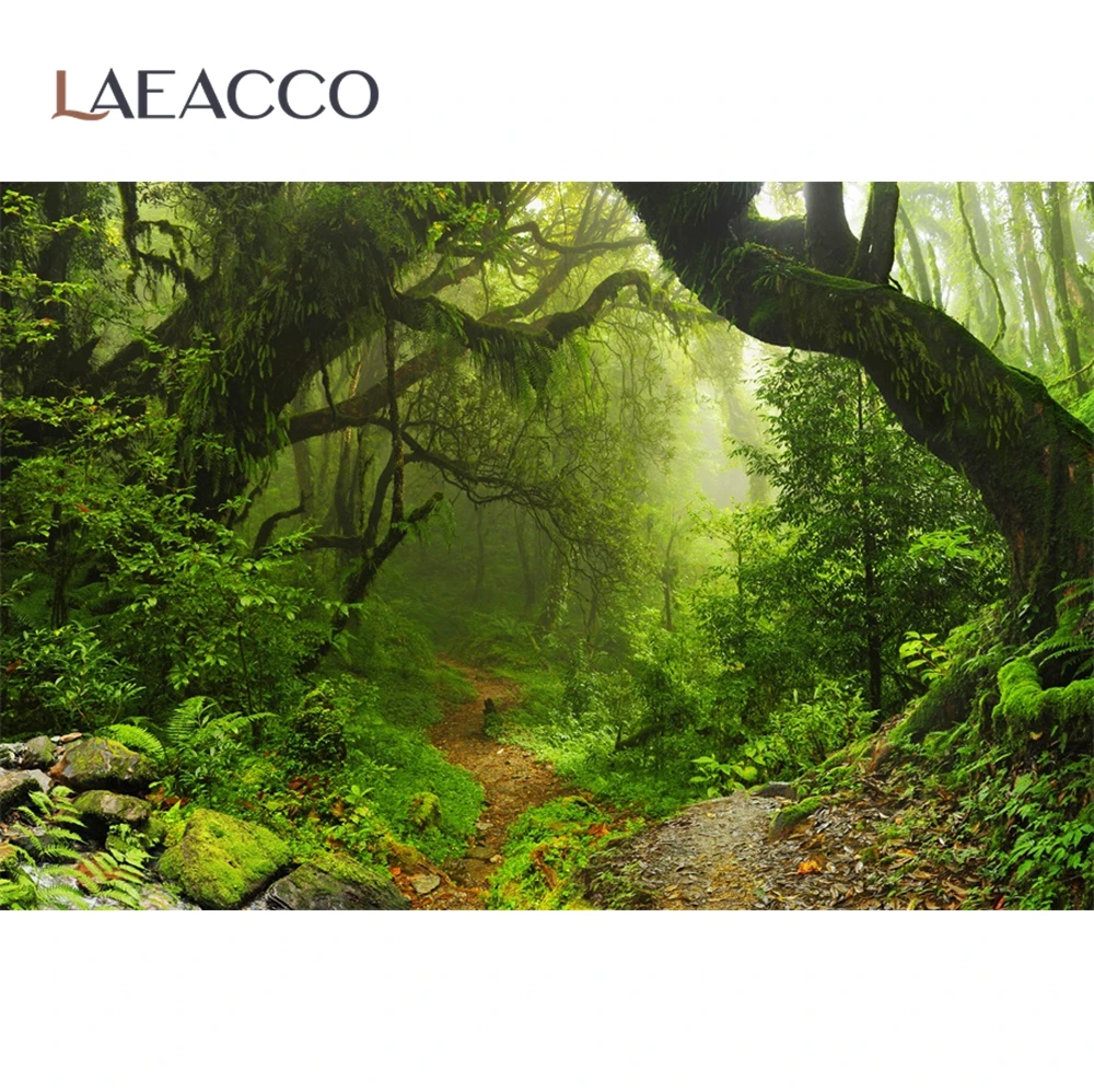 Laeacco лесной фон зеленые джунгли Дерево Трава таинственный путь вечерние естественный вид фотографические фоны фотосессия Фотостудия