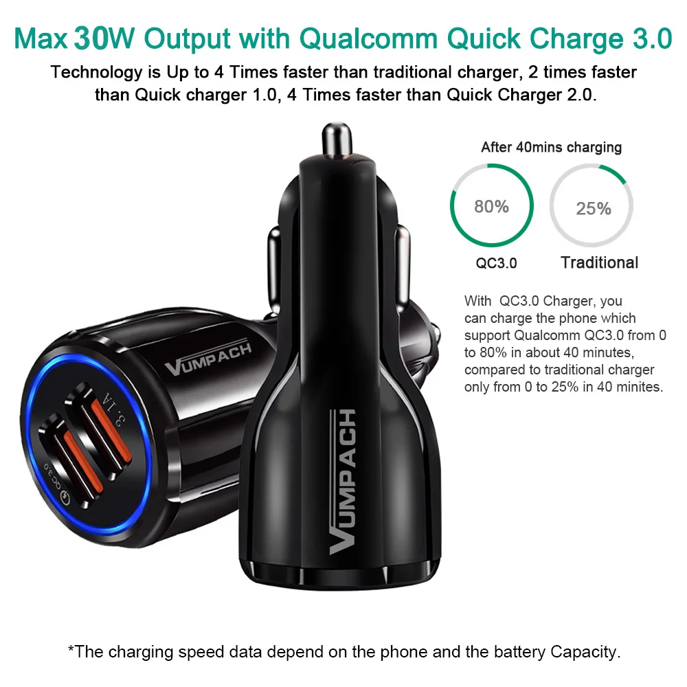 Автомобильное зарядное устройство Quick Charge 3,0 с двумя USB-порт...