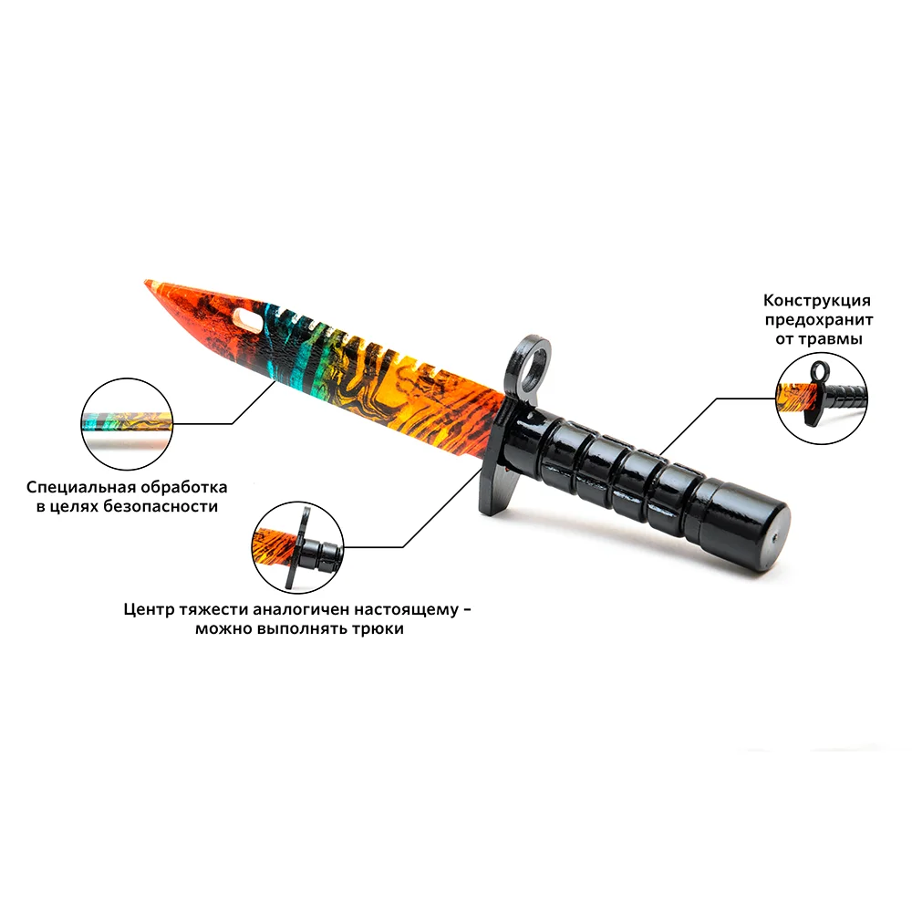 Поэтому предлагаем Вашему вниманию игрушку – аналог этого байонета, выполненный из дерева. Очень круто и необычно выглядит ножик с мраморным градиентом. Лезвие его окрашено металлической краской под мрамор, а сверху нанесен градиент из трёх цветов – красного, синего и жёлтого. Деревянный ножик – безопасный аналог штык-ножа М9 Хотите показать свою заинтересованность в увлечениях Вашего чада, и сделать ему подарок, которому он будет безумно рад?