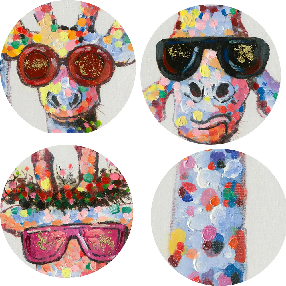 Красочные масляные Животные Жираф семья с очками живопись холст картина холст печать стены искусства для комнаты постельных принадлежностей