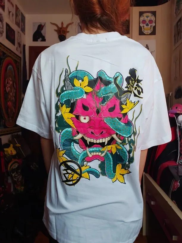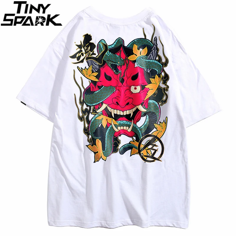 Футболка со змеиным призраком, уличная хлопковая футболка, с коротким рукавом, в стиле хип-хоп, с принтом сзади, 2021, Футболка мужская хип-хоп