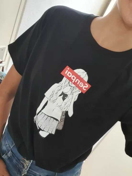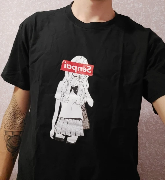 Мужская хлопковая черная футболка Senpai с принтом в стиле аниме, для девочек, ботаников, женская уличная футболка с манга, хлопковая футболка, унисекс, одежда в стиле Харадзюку