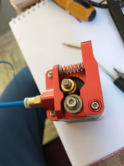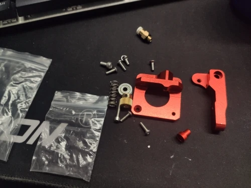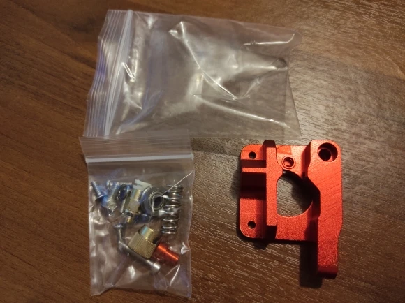 Алюминий хороший, слой такой что руками прогнуть не получится никак. Качестве неплохое, пойдет на замену старому пластиковому экструдеру эндера. Но вот проблема - нет прижимного кольца для пружины. То есть экструдер прижимает изначально с максимальной силой. Прижимное кольцо надо будет распечатать, хотя мог бы и продавец положить, сложной конструкции там нет.